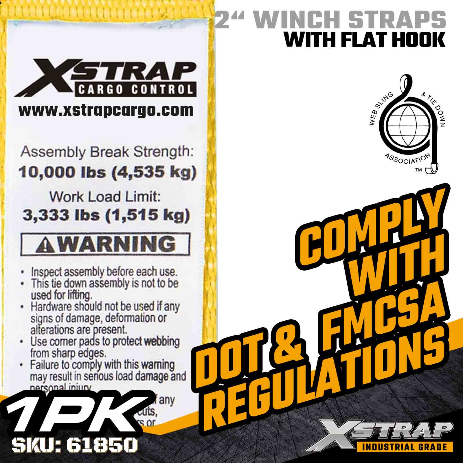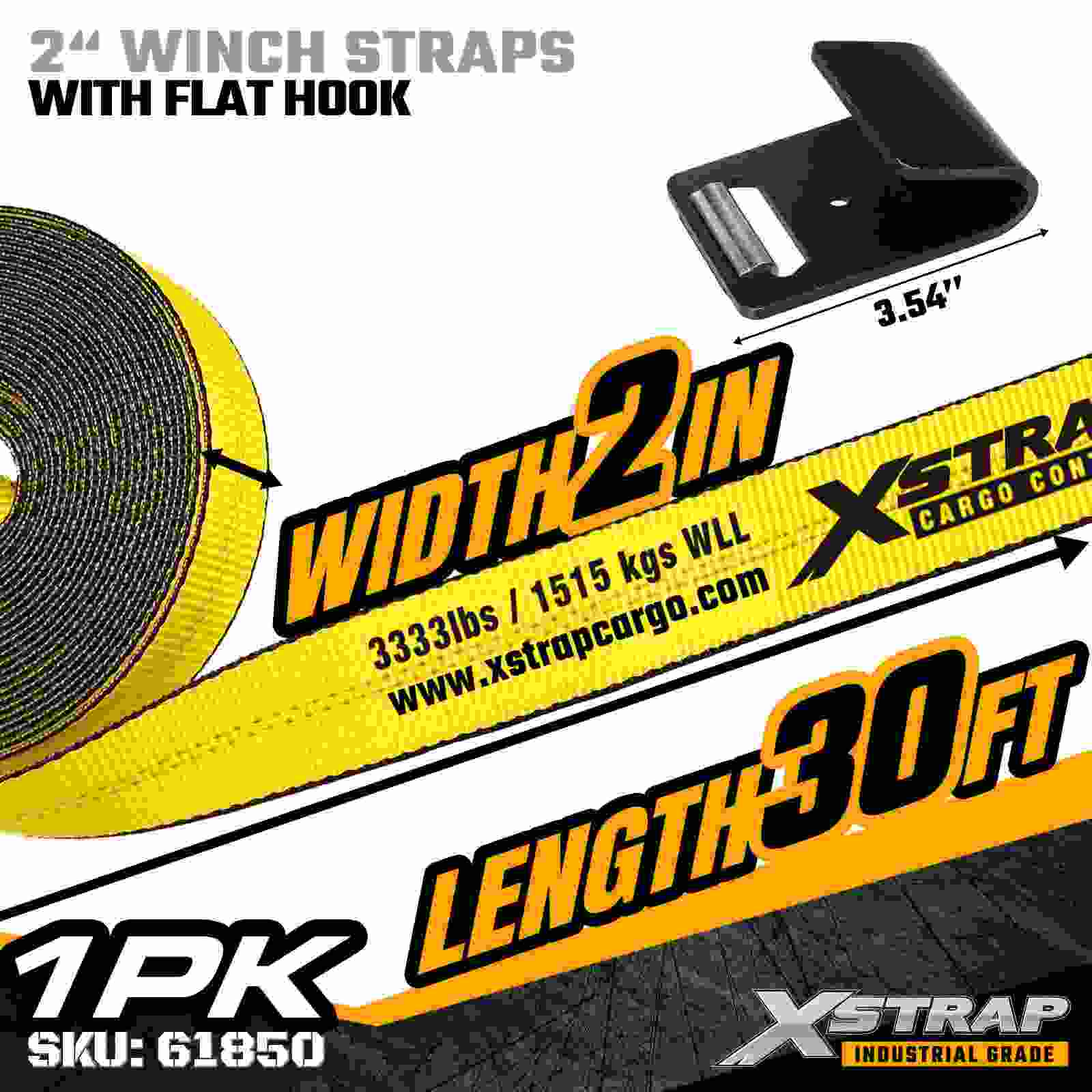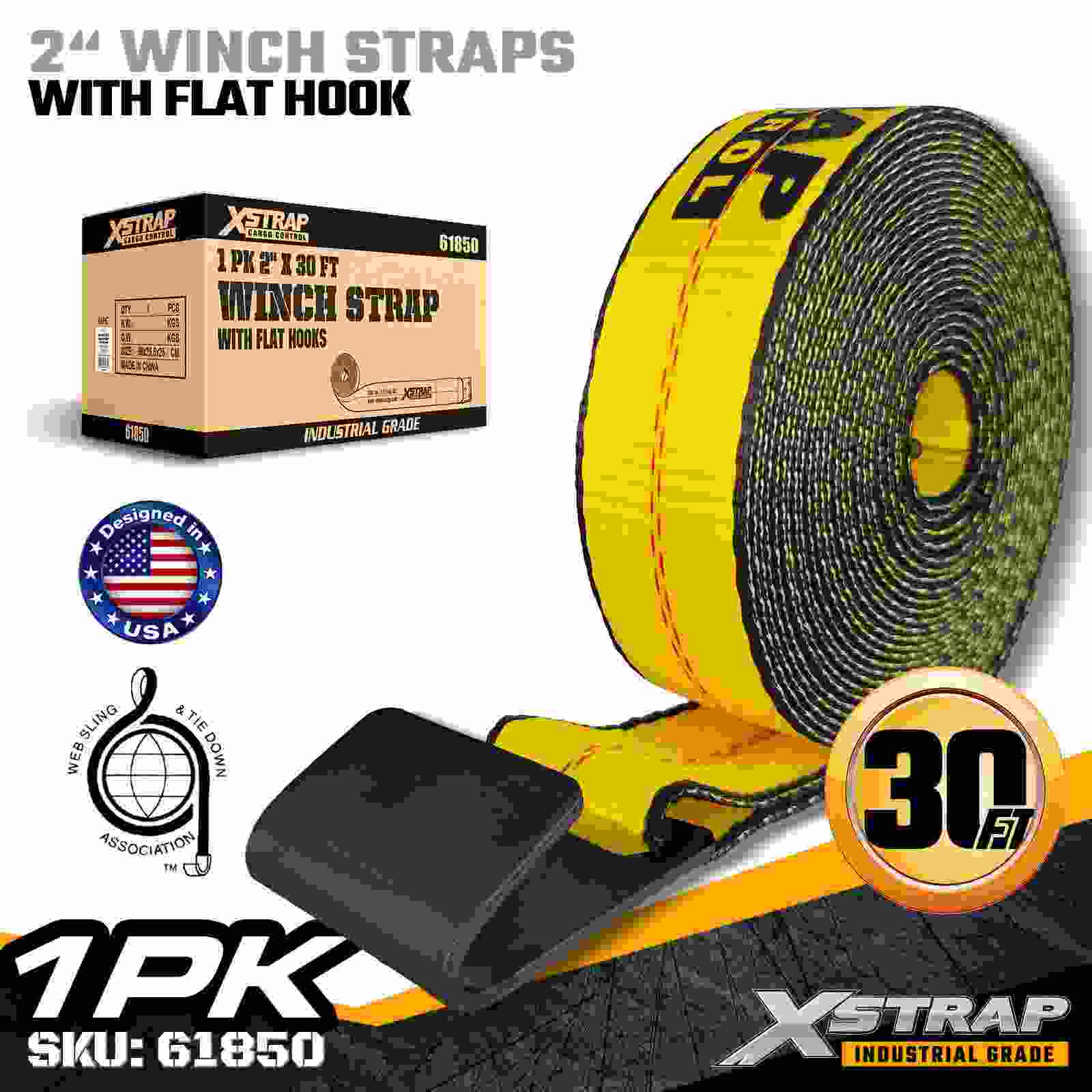 Dây đeo tời tiêu chuẩn Xstrap 61850 2" × 30ft được chế tạo để cố định hàng hóa phẳng đáng tin cậy, có Móc phẳng được gia cố và vải polyester có độ bền cao. Với Giới hạn tải trọng làm việc 3.333 lbs và Độ bền đứt 10.000 lbs, nó mang lại hiệu suất đáng tin cậy để vận chuyển hàng hóa hàng ngày, tải pallet, gỗ xẻ, đường ống và các ứng dụng hậu cần nói chung.