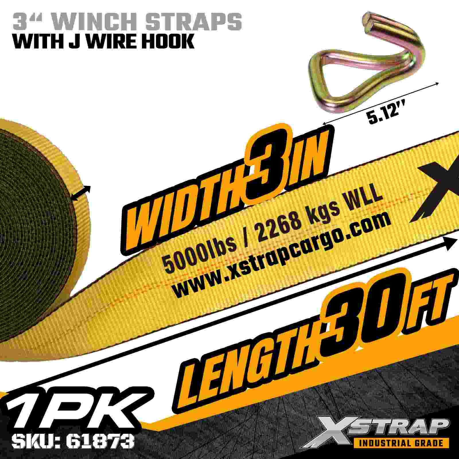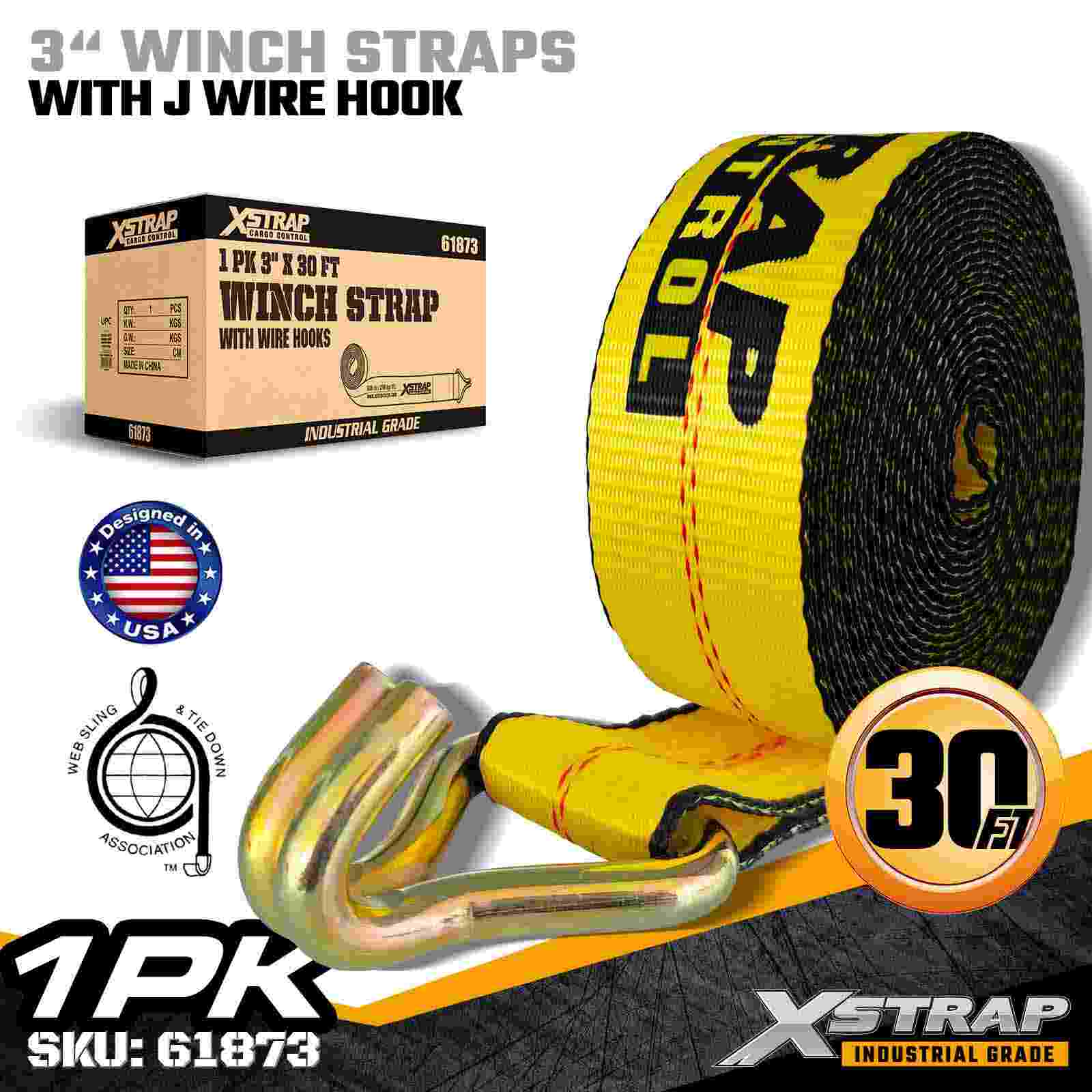 Dây đeo tời tiêu chuẩn Xstrap 61873 3" × 30ft là dây đeo cố định hàng hóa hạng nặng được thiết kế cho xe moóc phẳng và hàng hóa quá khổ. Với Móc dây được gia cố và vải polyester 3 inch cực rộng, dây tời 3 inch này mang lại Giới hạn tải trọng làm việc 5.000 lbs và Độ bền đứt 15.000 lbs. Chiều dài 30ft mở rộng mang lại tầm với bổ sung, lý tưởng để đảm bảo tải trọng rộng hơn, cao hơn hoặc có hình dạng không đều yêu cầu các tùy chọn đính kèm linh hoạt.