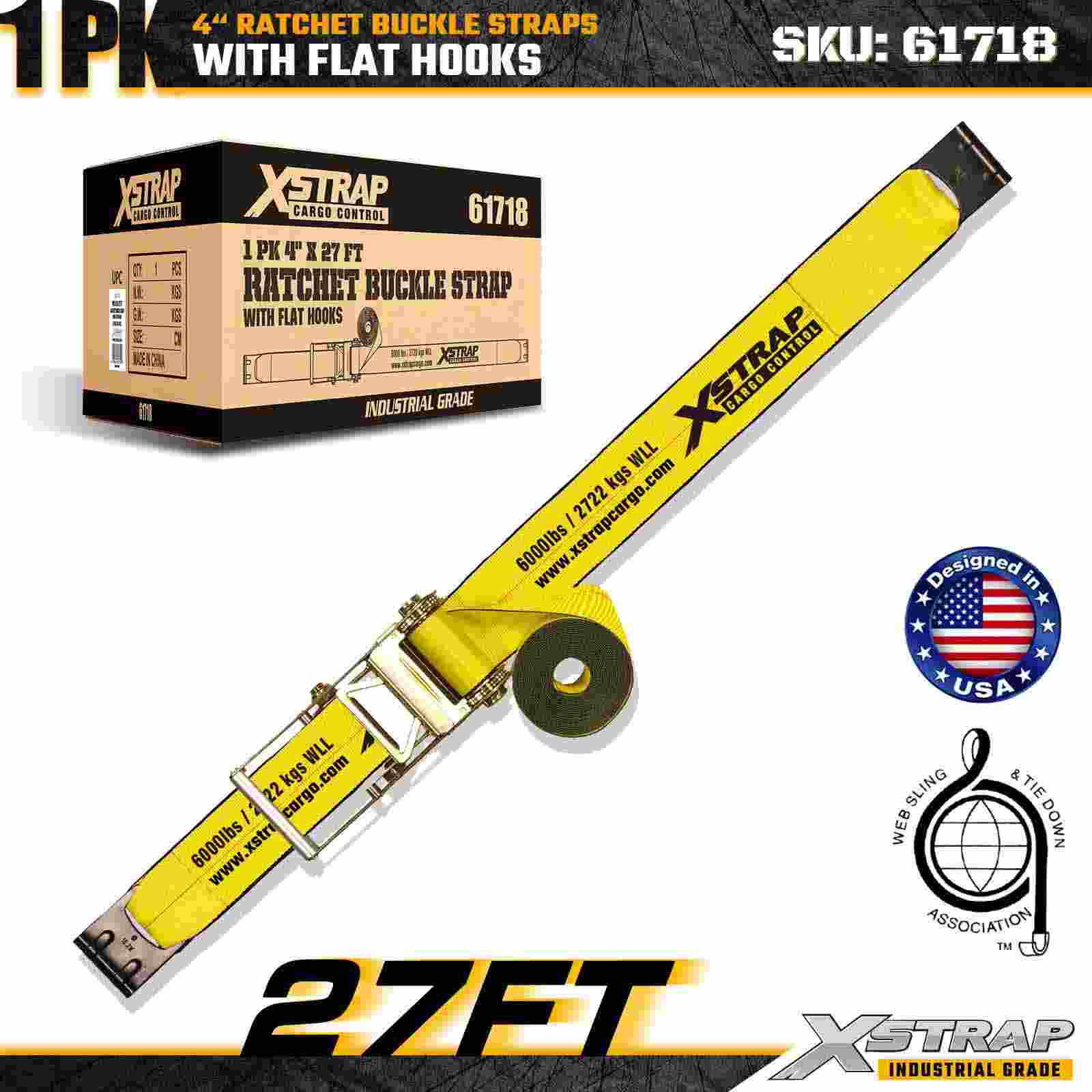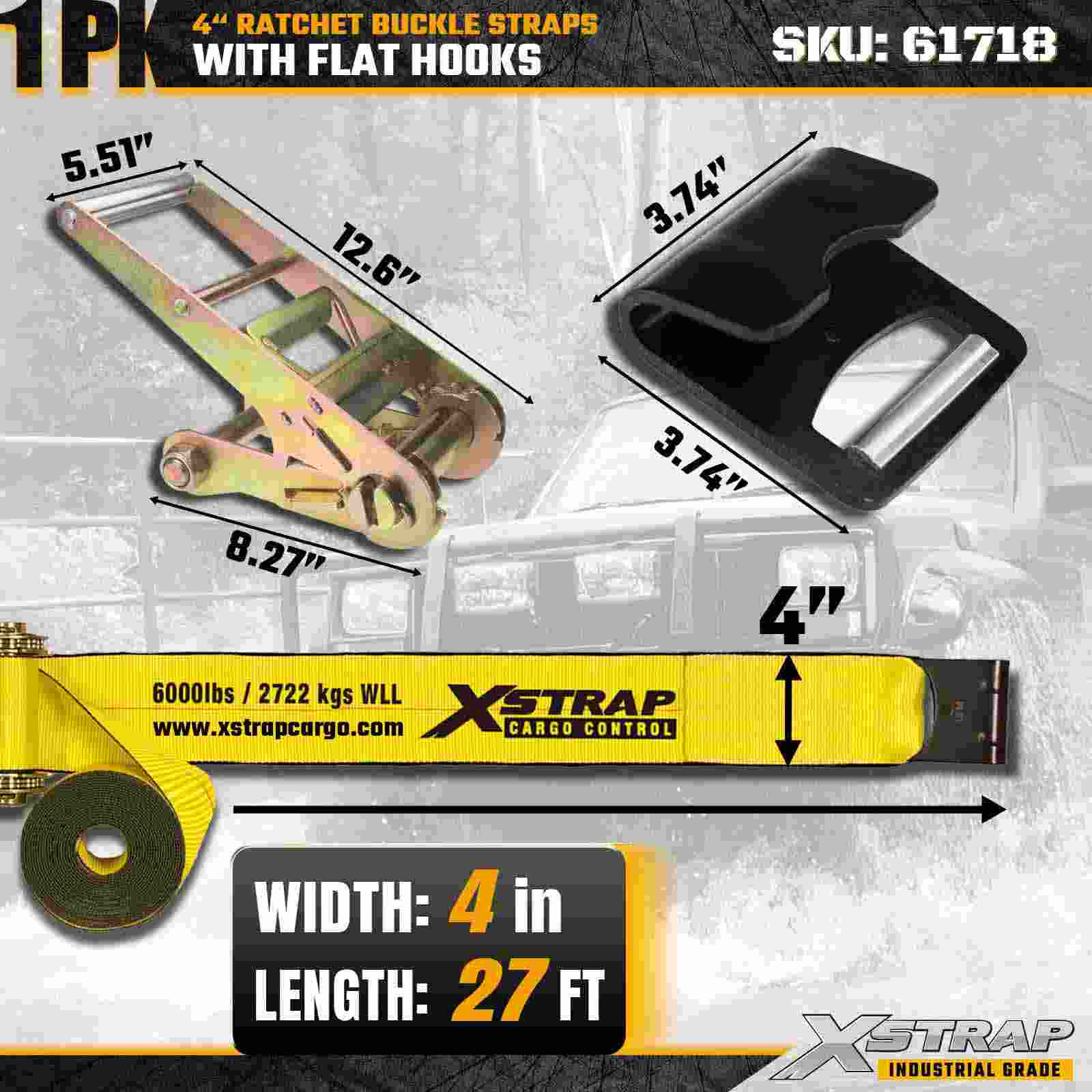 Dây đeo khóa Ratchet Xstrap 61718 4" × 27ft (1 gói) được chế tạo để đảm bảo an toàn cho hàng hóa ở cường độ cao, có Móc phẳng được gia cố và cơ cấu bánh cóc hạng nặng. Với Giới hạn tải trọng làm việc 6.000 lbs và Độ bền đứt 18.000 lbs, dây đeo này được thiết kế để kéo phẳng chuyên nghiệp, vật liệu xây dựng, vận chuyển máy móc và hậu cần công nghiệp, nơi cần có độ bền và độ tin cậy tối đa.