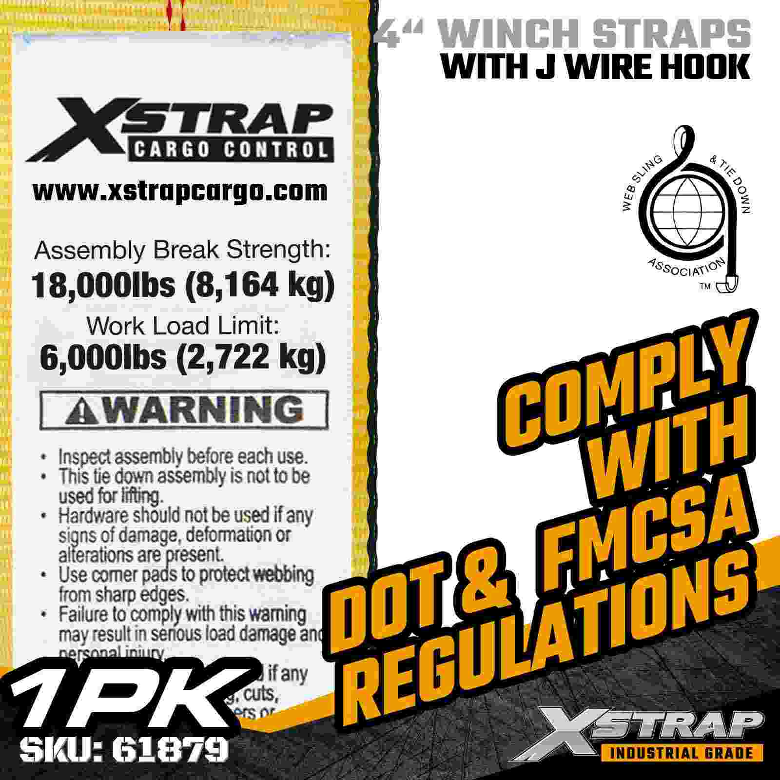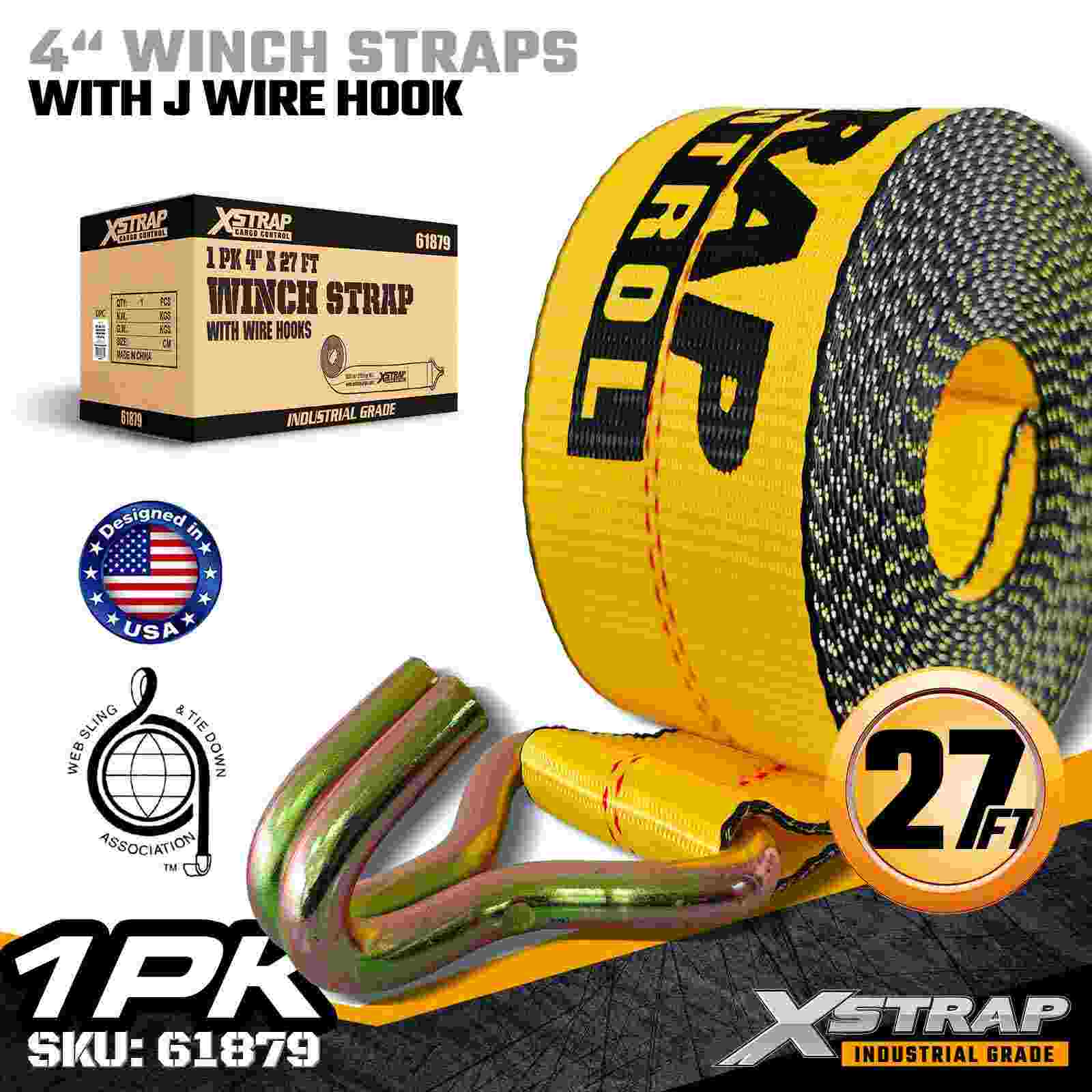 Dây đeo tời tiêu chuẩn Xstrap 61879 4" × 27 ft là dây đai cố định hàng hóa hạng nặng, neo linh hoạt được thiết kế cho xe moóc phẳng và phương tiện vận tải công nghiệp. Với Móc dây được gia cố và vải polyester 4 inch siêu rộng, dây đeo tời 4 inch này mang lại Giới hạn tải trọng làm việc 6.000 lbs và Độ bền đứt 18.000 lbs. Thiết kế Móc dây cung cấp các tùy chọn đính kèm linh hoạt, lý tưởng cho những người vận hành cần nhanh chóng, dễ thích ứng điểm kết nối cho các loại hình vận tải khác nhau.