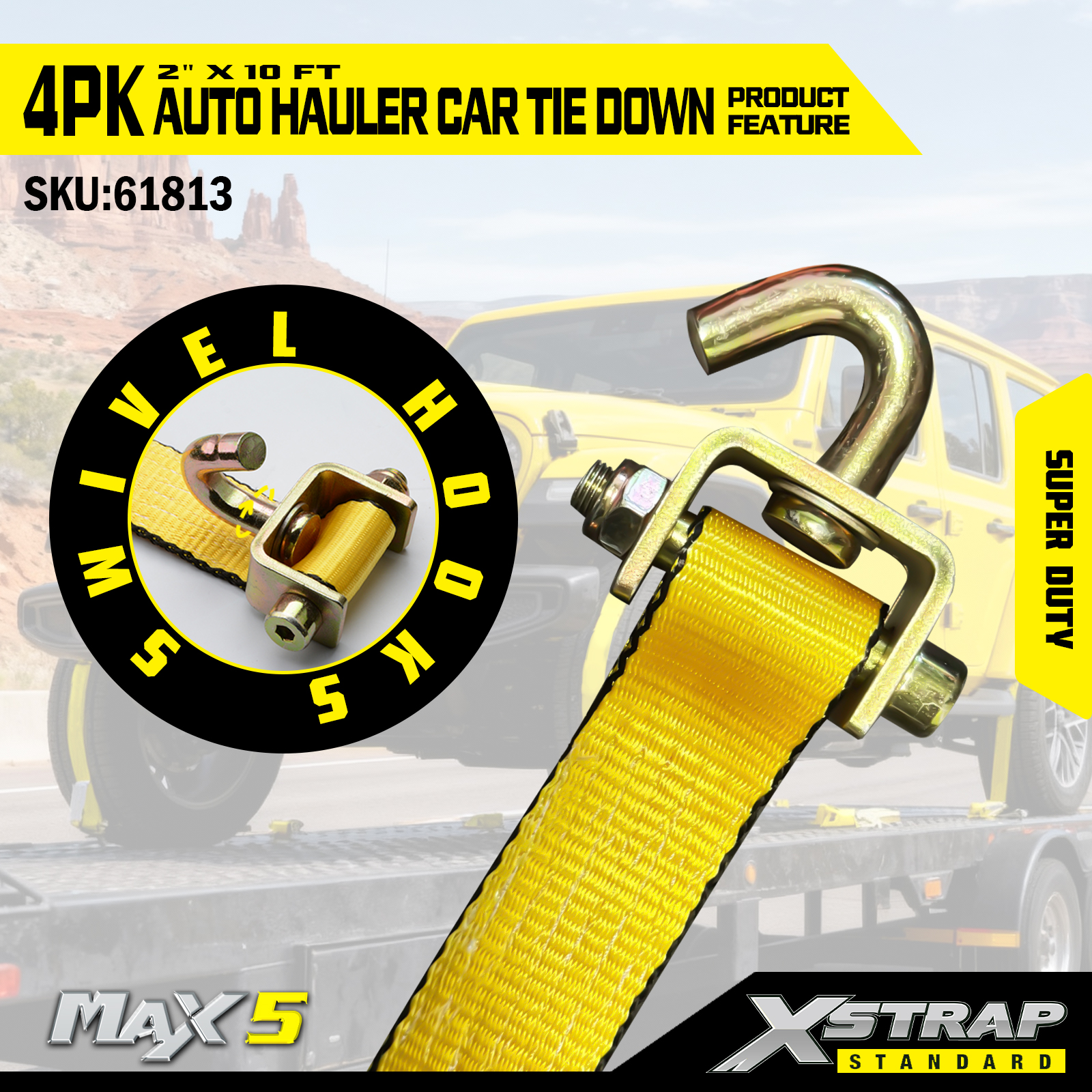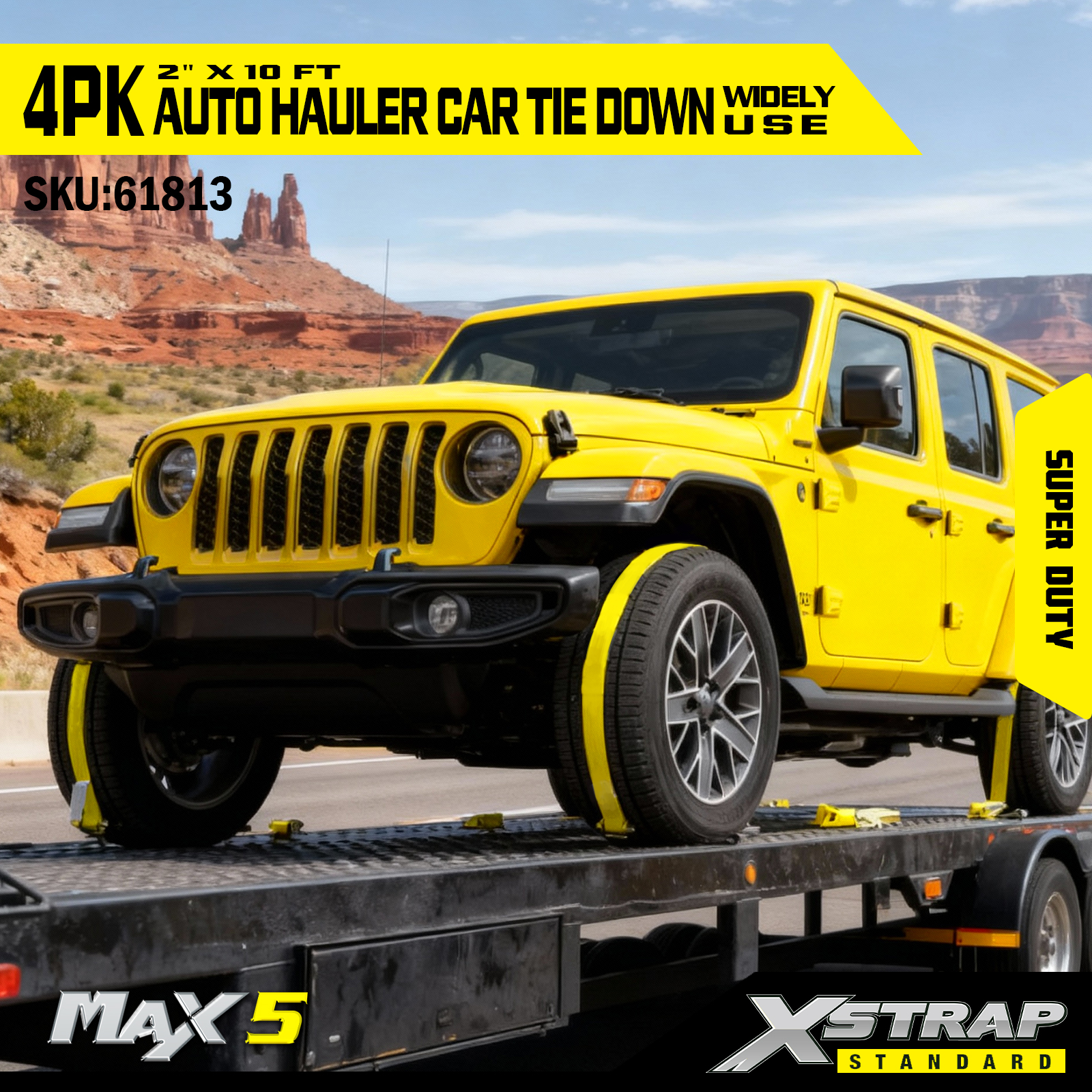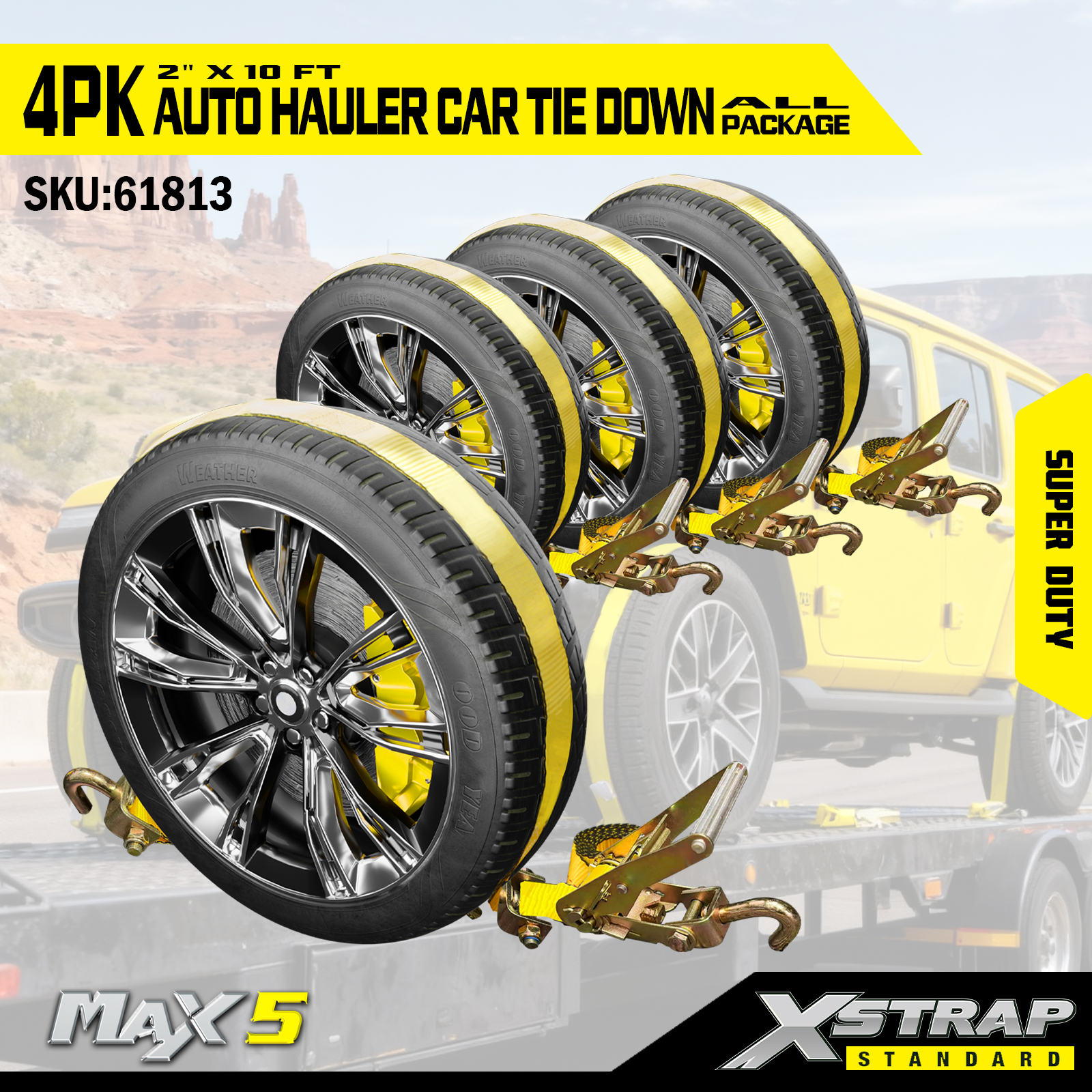 - Bảo hiểm toàn diện 4 gói: Bộ 4 món cung cấp một dây buộc cho mỗi lốp, mang lại sự an toàn khi chịu tải đầy đủ cho một chiếc xe trong quá trình vận chuyển.