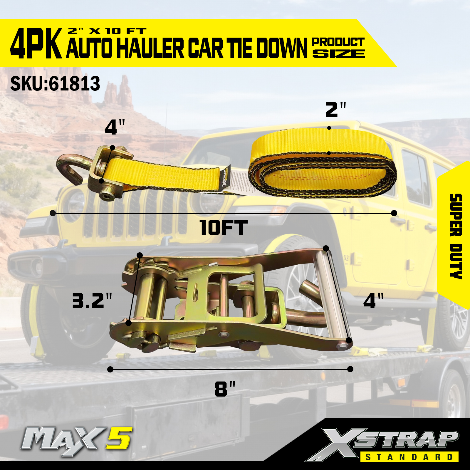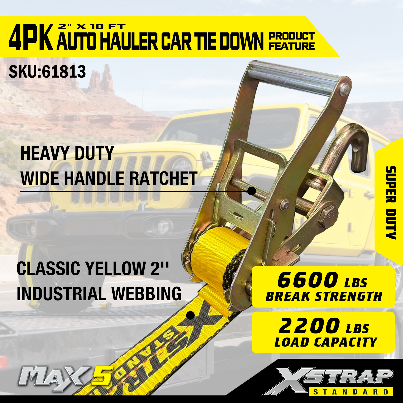 - Khả năng tải siêu tải: Được đánh giá cho tải trọng làm việc an toàn 2.200LBS và độ bền đứt 6.600LBS, nó xử lý các phương tiện hạng nặng và các điều kiện vận chuyển đòi hỏi khắt khe.
