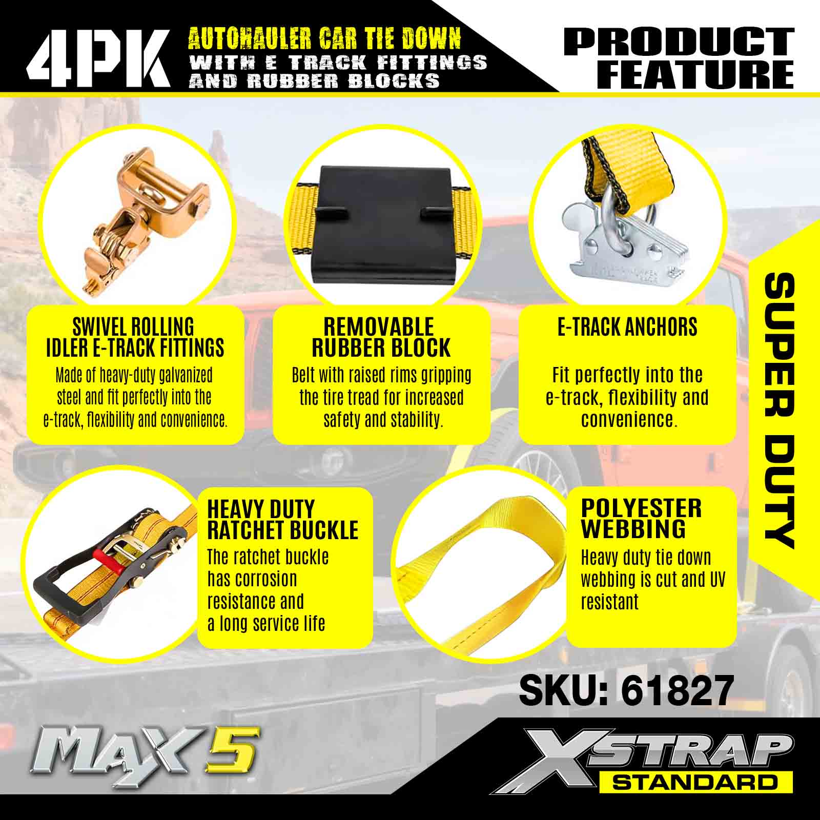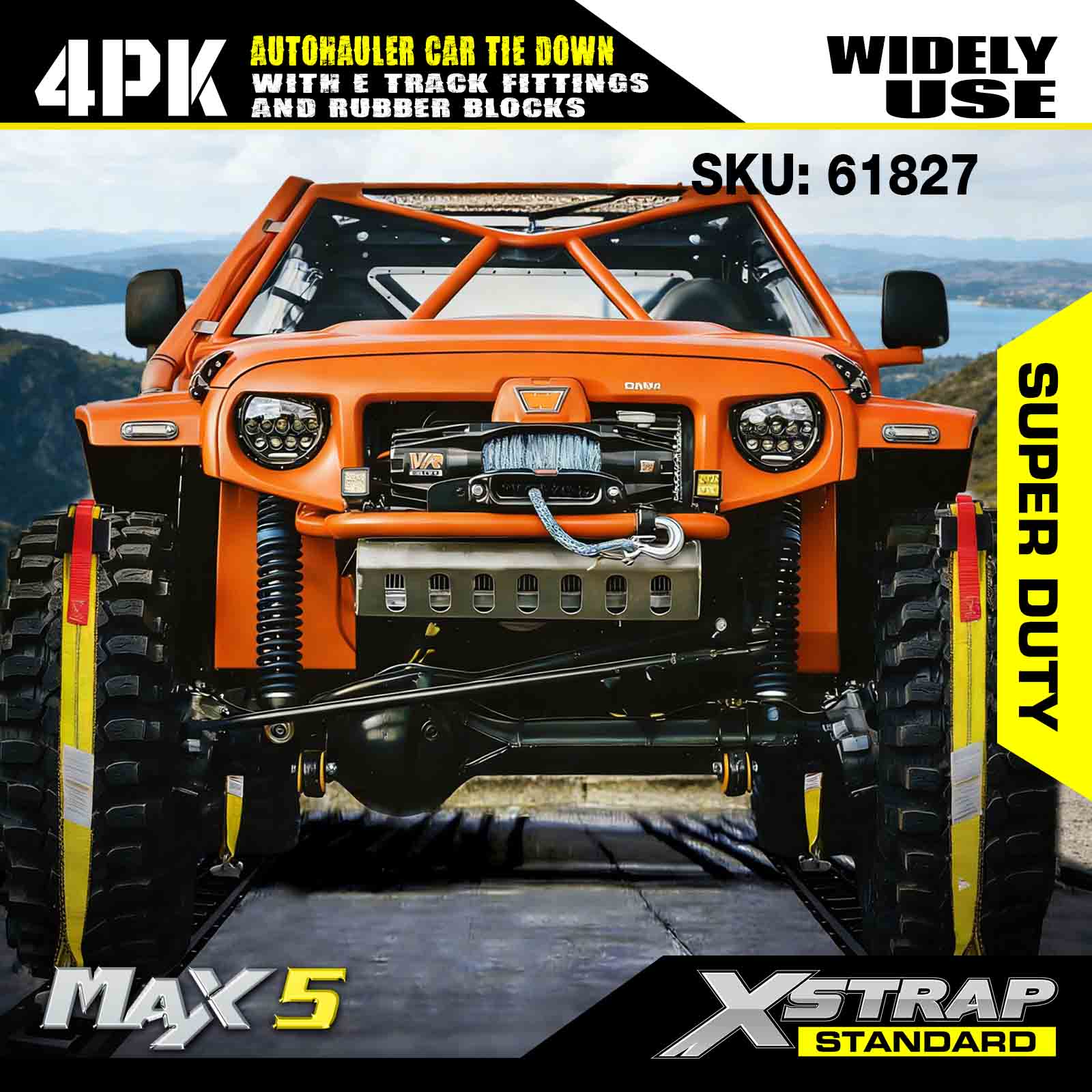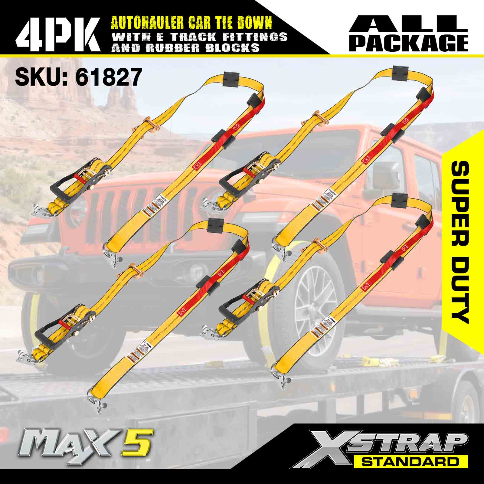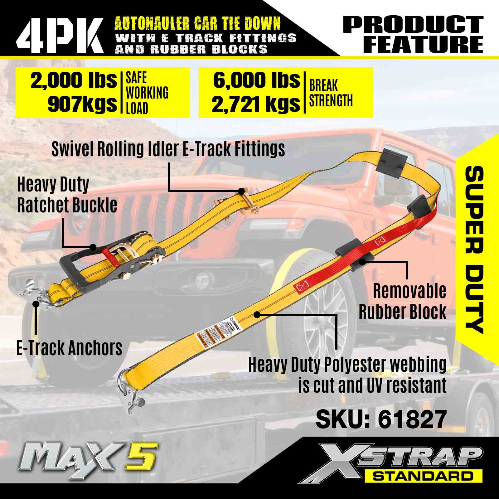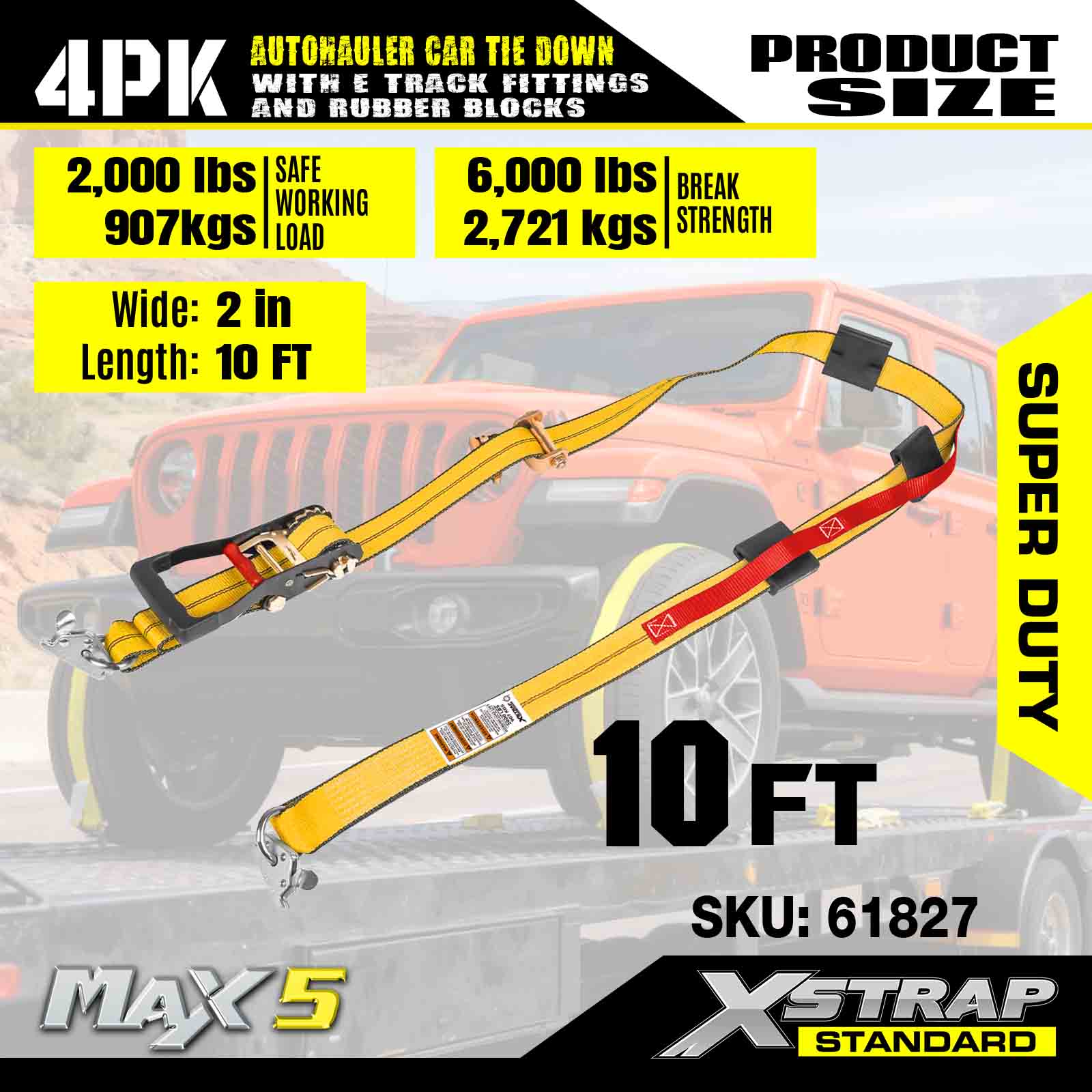 Xstrap Xstrap E Dây đai lốp theo dõi cho xe moóc hạng nặng 2 "x 10' Dây đeo xe tải tự động-6.000lb Độ bền đứt được đảm bảo-(4) Bộ dây buộc xe cao cấp với khối cao su Dây buộc bánh xe cho xe tải, UTV
