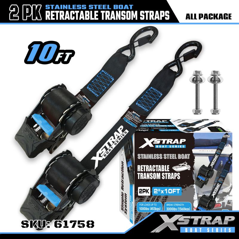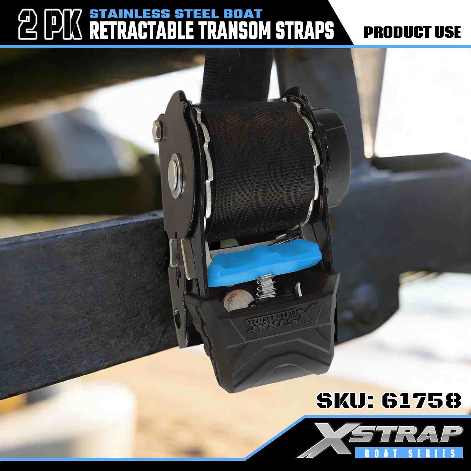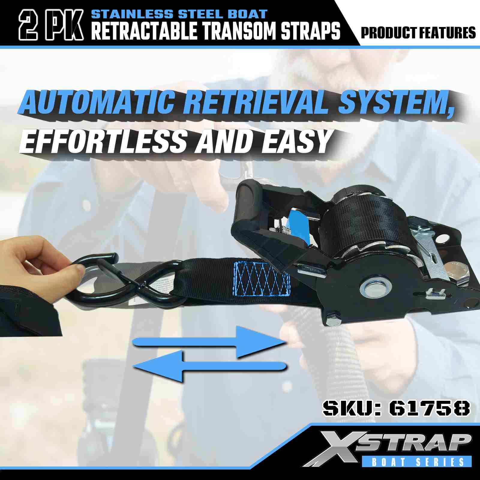 Dây đeo ngang có thể thu vào thuyền Xstrap 2PK có móc chữ S an toàn, Dây đeo buộc xuống bằng polyester 2 inch x 3,6 ' Dây đeo có thể thu vào, Dây đai buộc hàng hóa có sức chứa 1000lbs với Móc chữ S an toàn dành cho Chuyên gia nghiêm túc để cố định Rơ moóc chở hàng, Rơ moóc giường phẳng, Thuyền trượt tuyết, Ô tô nhỏ.