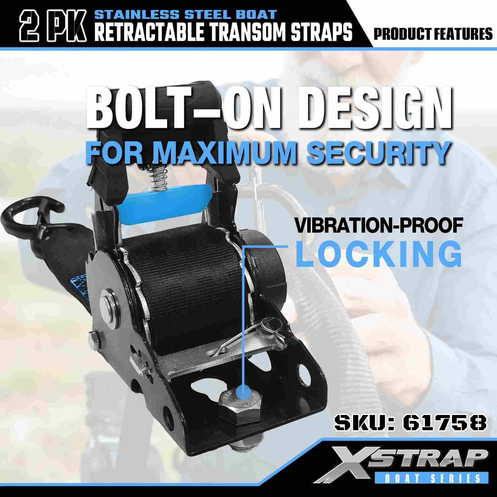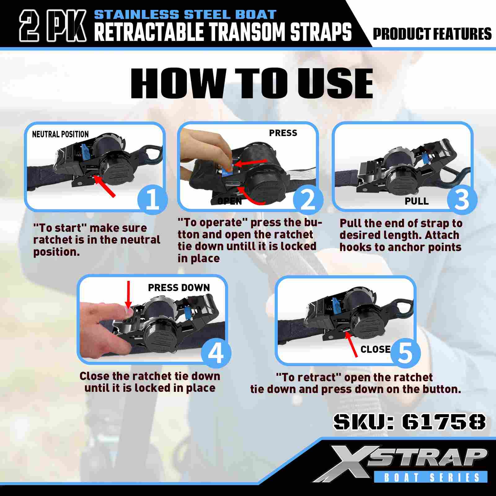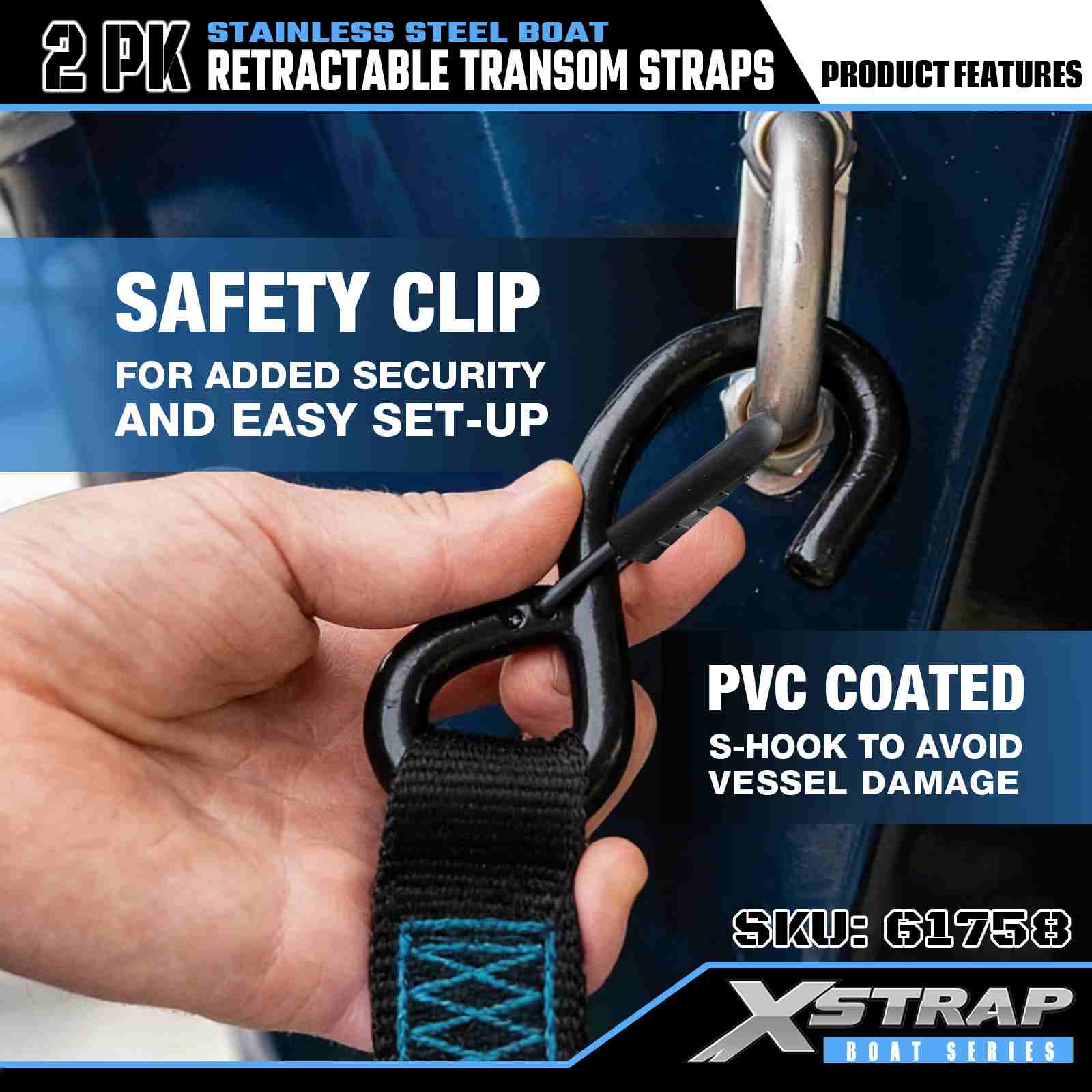 Dây đeo ngang có thể thu vào thuyền Xstrap 2PK có móc chữ S an toàn, Dây đeo buộc xuống bằng polyester 2 inch x 3,6 ' Dây đeo có thể thu vào, Dây đai buộc hàng hóa có sức chứa 1000lbs với Móc chữ S an toàn dành cho Chuyên gia nghiêm túc để cố định Rơ moóc chở hàng, Rơ moóc giường phẳng, Thuyền trượt tuyết, Ô tô nhỏ.