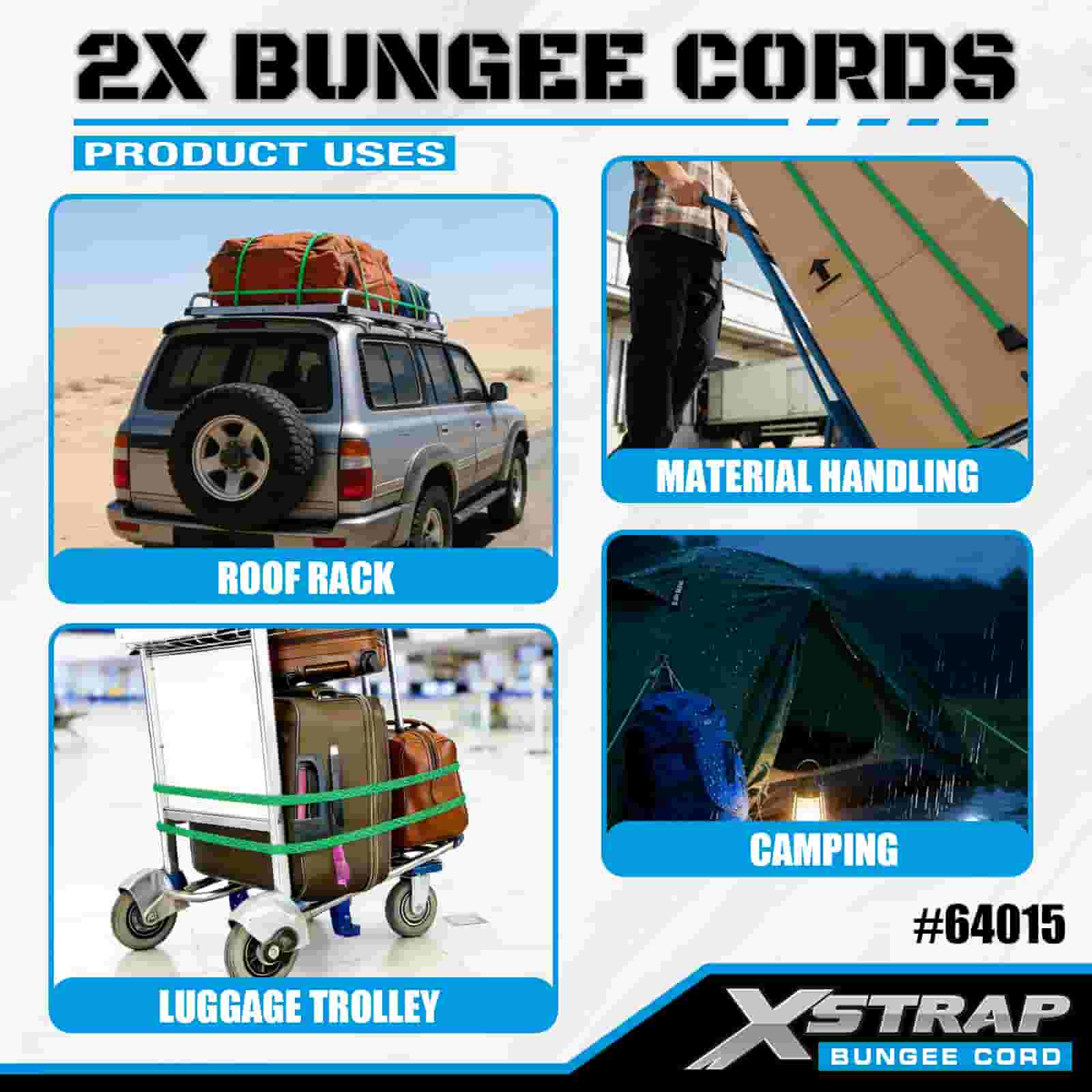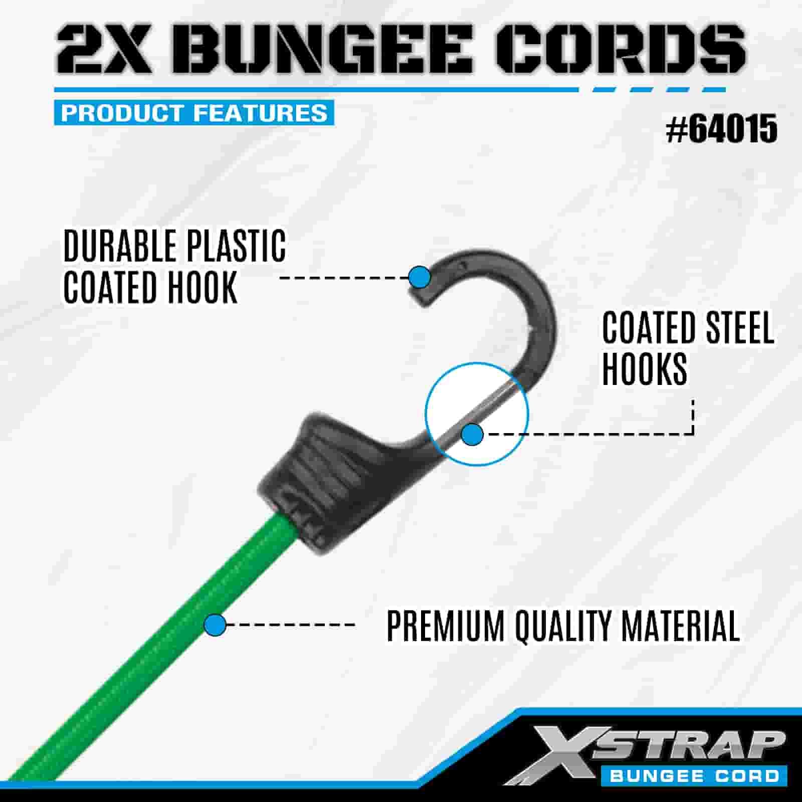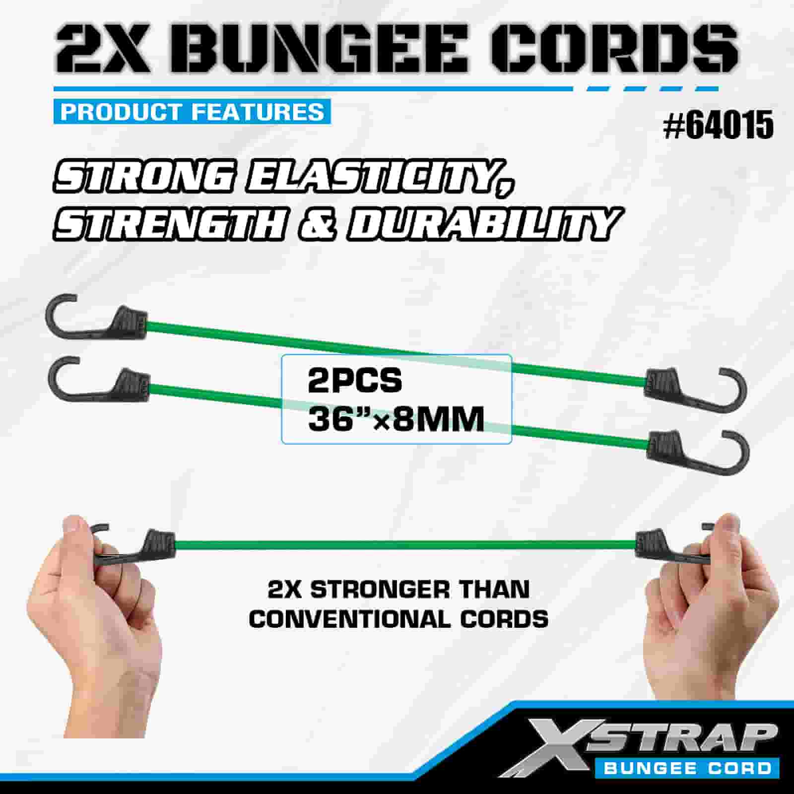 Dây Bungee Xstrap 2PK 2X 8 mm x 36”, độ bền đứt 88-110 lbs với móc chắc chắn để kiểm soát hàng hóa.
