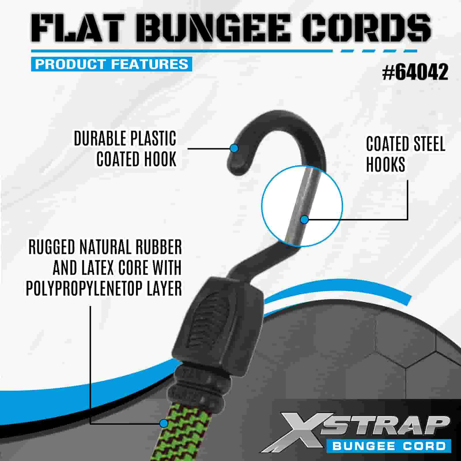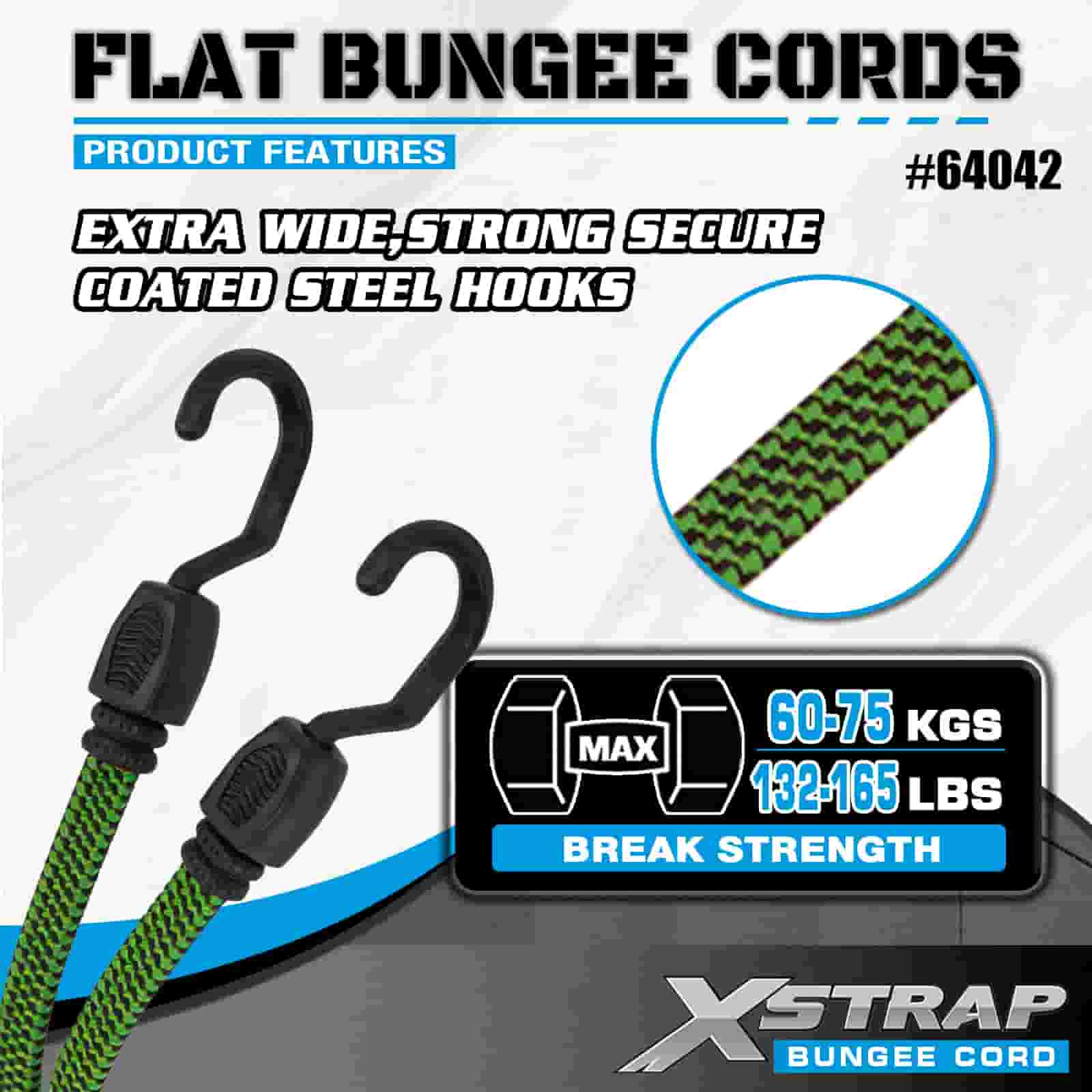 Dây Bungee phẳng Xstrap 2PK 18mm x 36”, độ bền đứt 132-165 lbs với móc chắc chắn để kiểm soát hàng hóa .