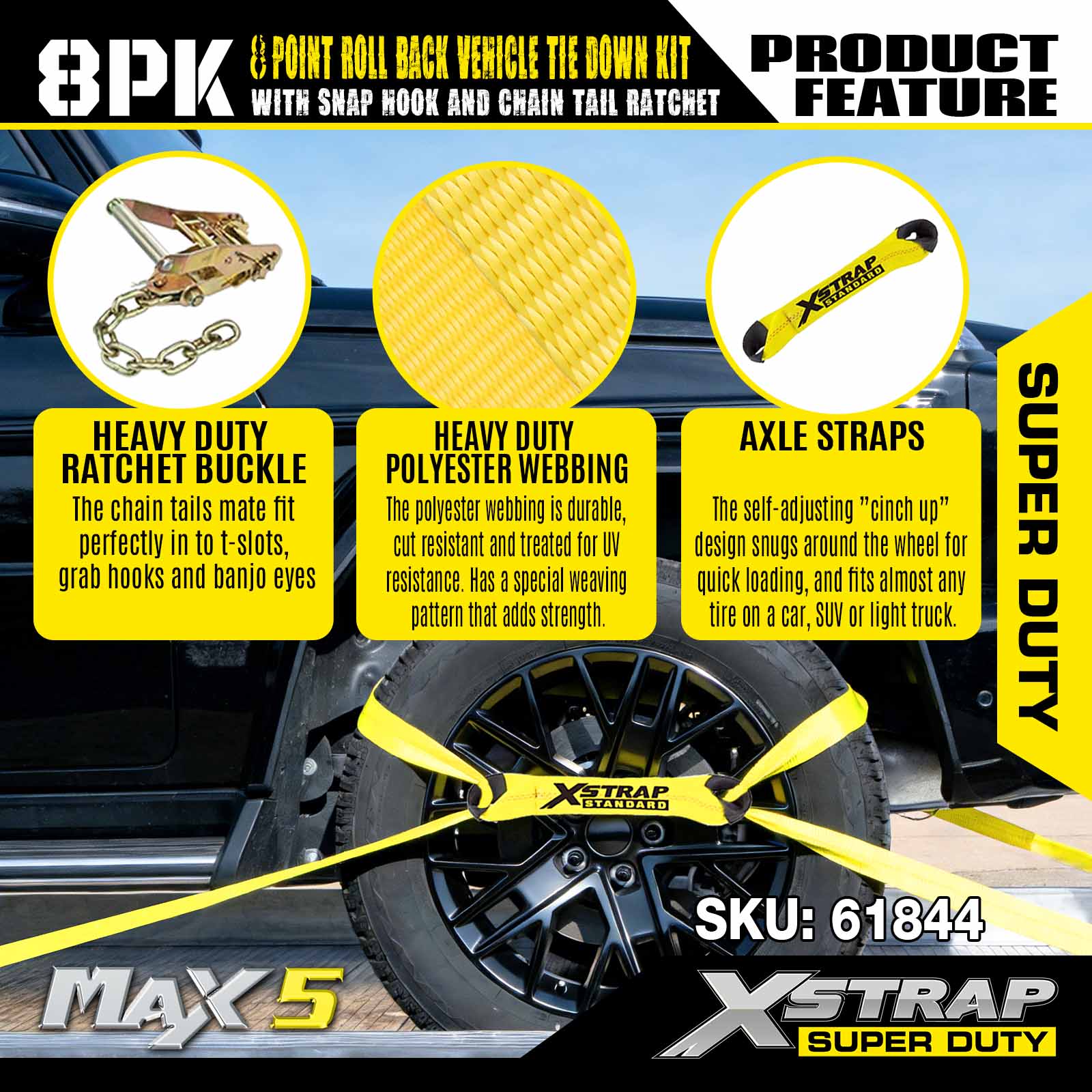 - Cấu trúc đặc biệt để tăng thêm sự an toàn và thoải mái - Bánh cóc mạ kẽm dicromat có khả năng chịu được thời tiết và rất chắc chắn. Tay cầm tiện dụng mang lại cảm giác cầm nắm và thoải mái vượt trội, đồng thời kiểu dáng rộng cho phép sử dụng dễ dàng ngay cả khi đeo găng tay. Thiết kế "cinch up" tự điều chỉnh ôm sát bánh xe để tải nhanh và phù hợp với hầu hết mọi loại lốp trên ô tô, SUV hoặc xe tải nhẹ.