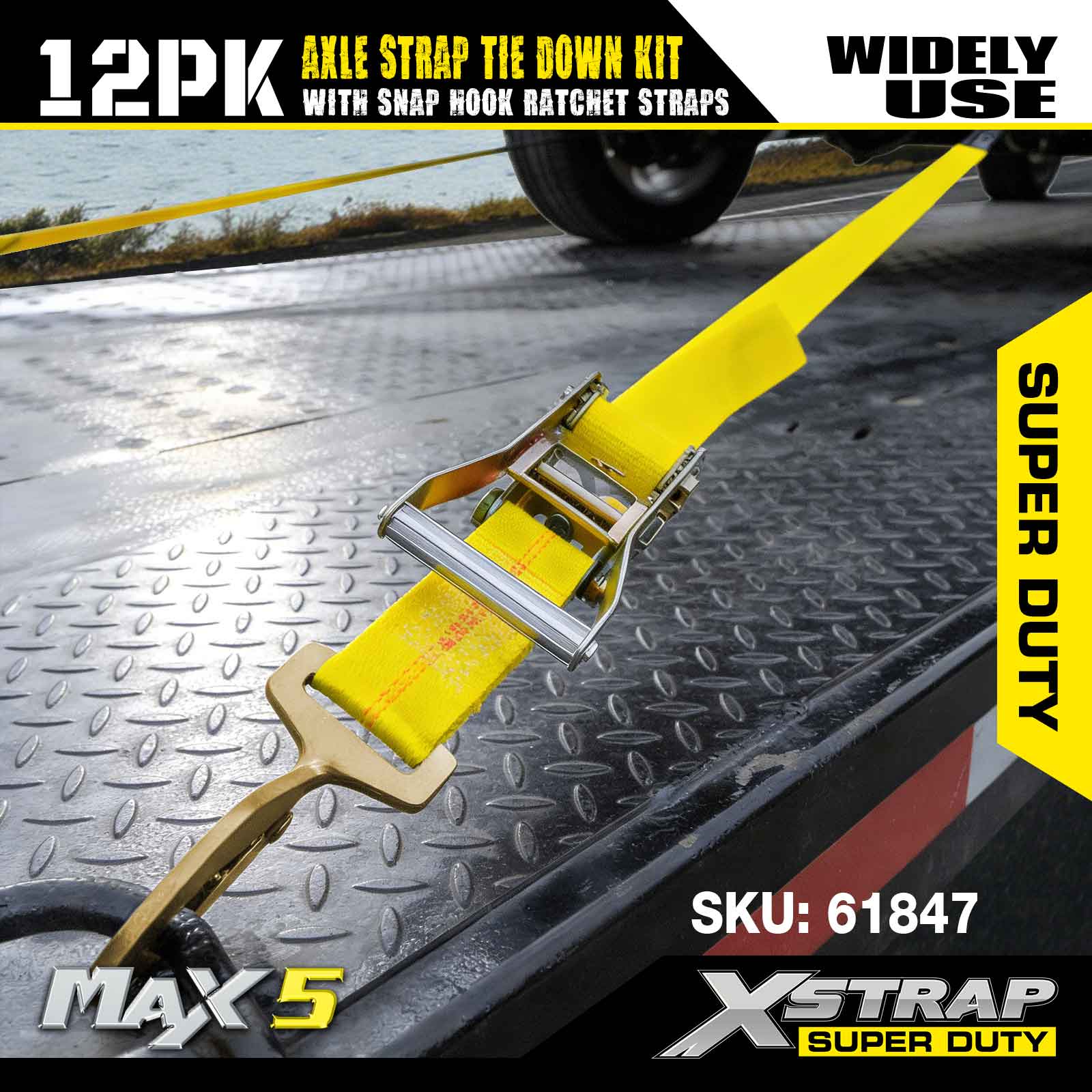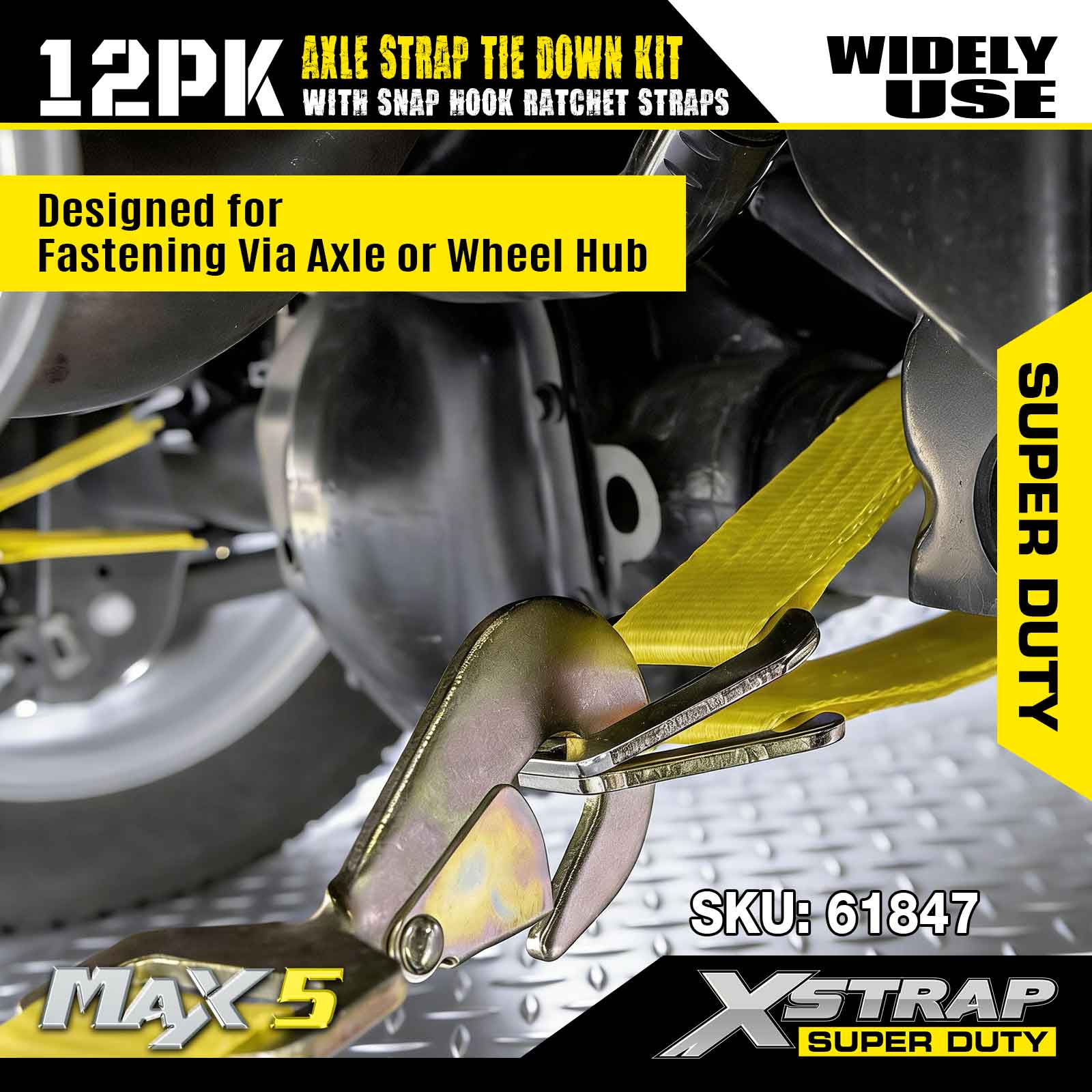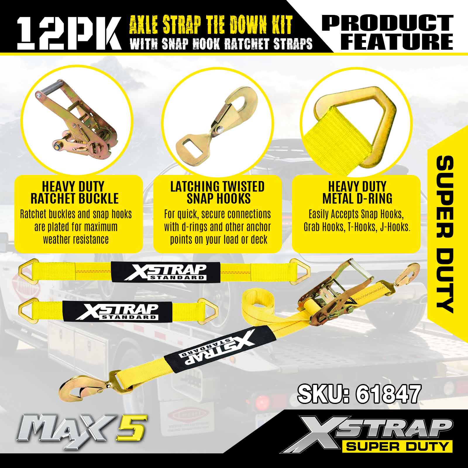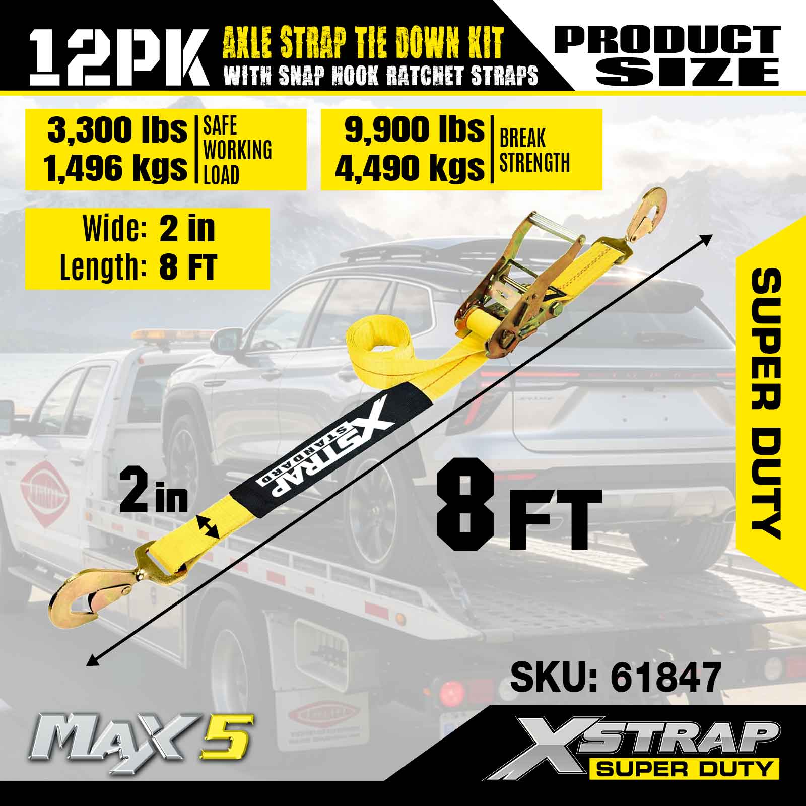 Bộ dây buộc dây đeo trục Xstrap 12PK (có dây đeo móc khóa) – Super Duty. Nó có tải trọng làm việc an toàn là 3.300LBS (1.496KG) và độ bền đứt là 10.000LBS (4.490KG).