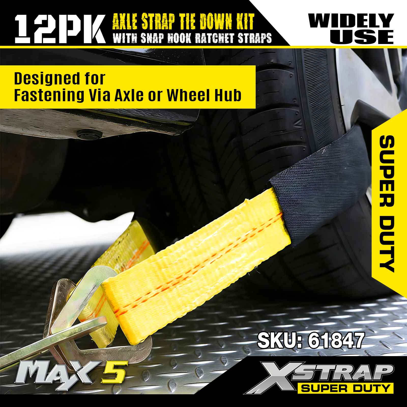 - Giải pháp 12 gói: Bộ sản phẩm bao gồm mọi thứ cần thiết để cố định toàn bộ xe (4 dây đai bánh cóc, 8 dây đai trục), loại bỏ nhu cầu mua riêng.