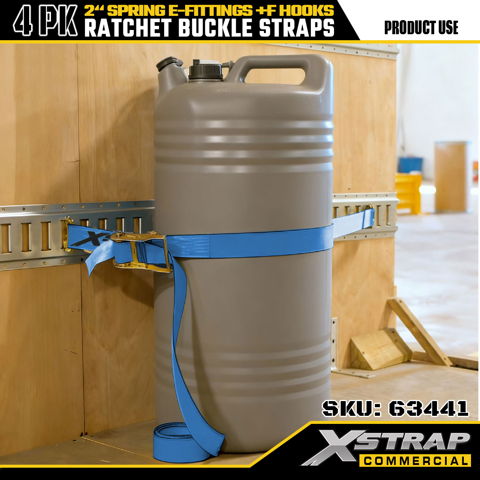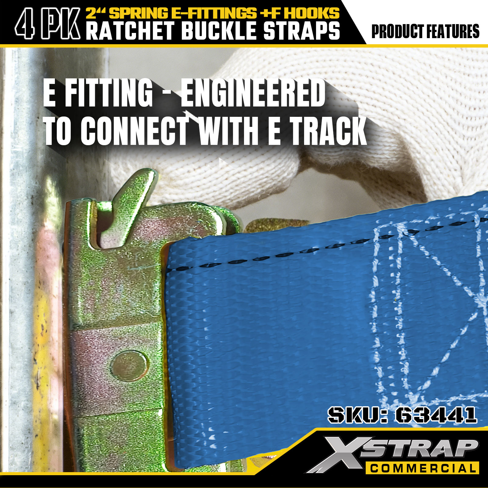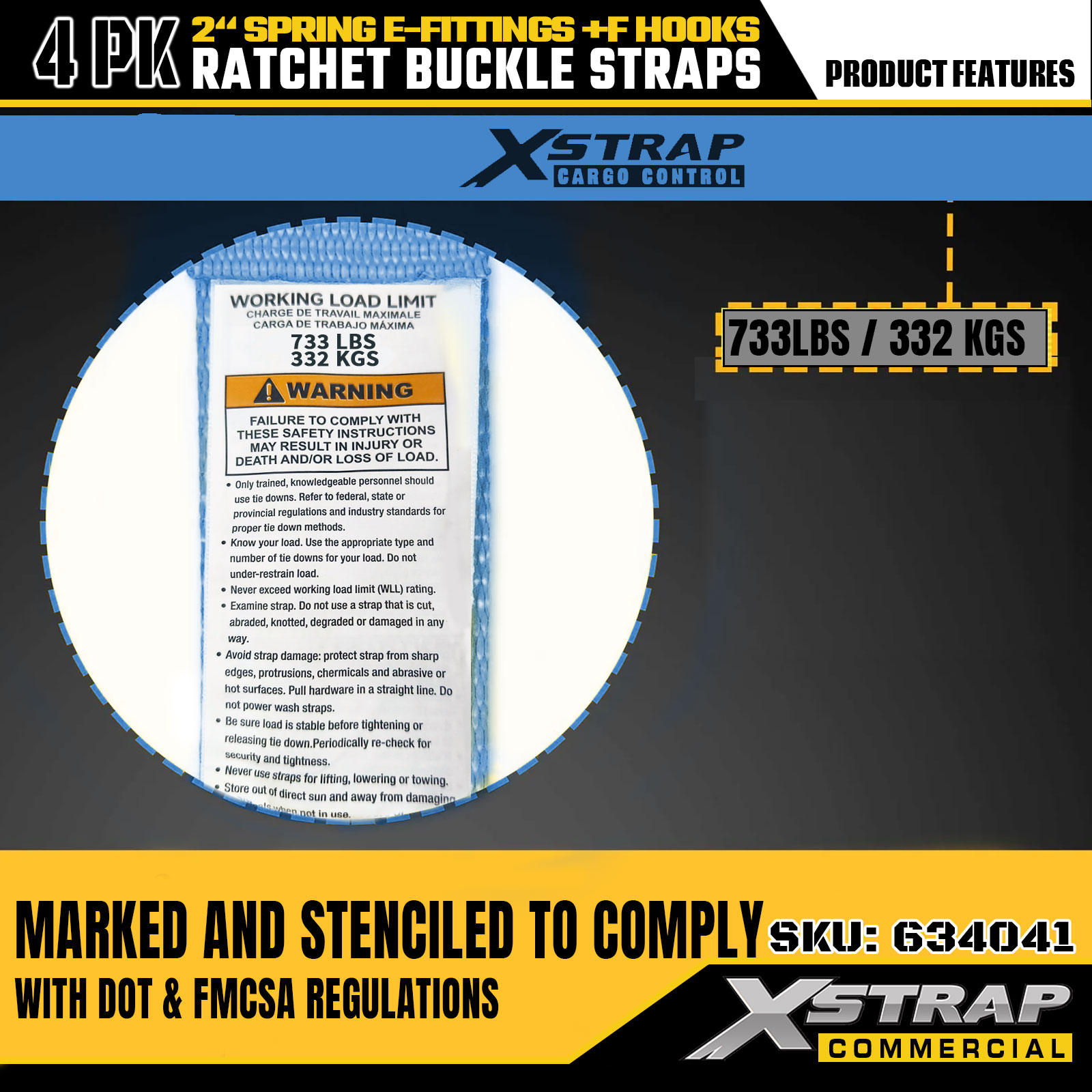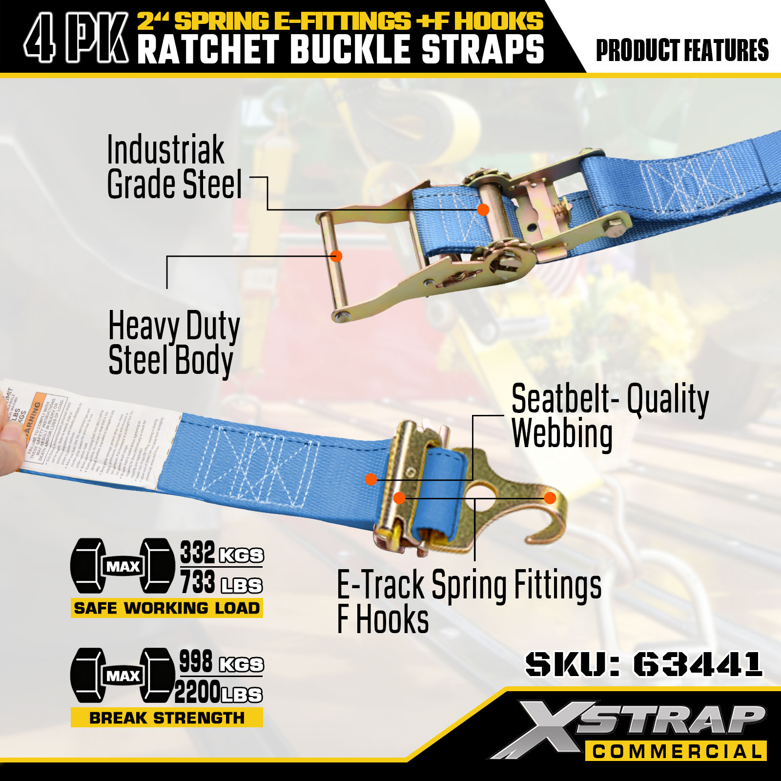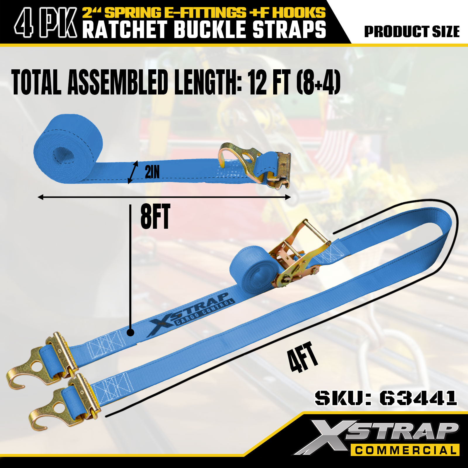 Xstrap 4 gói Dây buộc xuống Ratchet 2" x 12' Polyester với phụ kiện lò xo E & móc F, 733 lbs SWL & 332 lbs Độ bền đứt cho xe tải, di chuyển, vận chuyển hàng hóa tổng hợp
