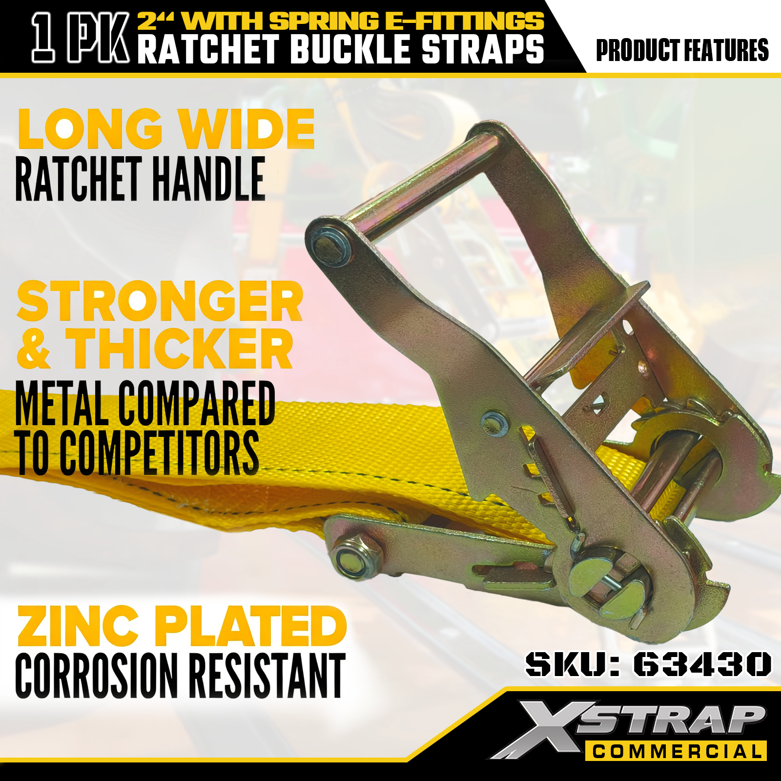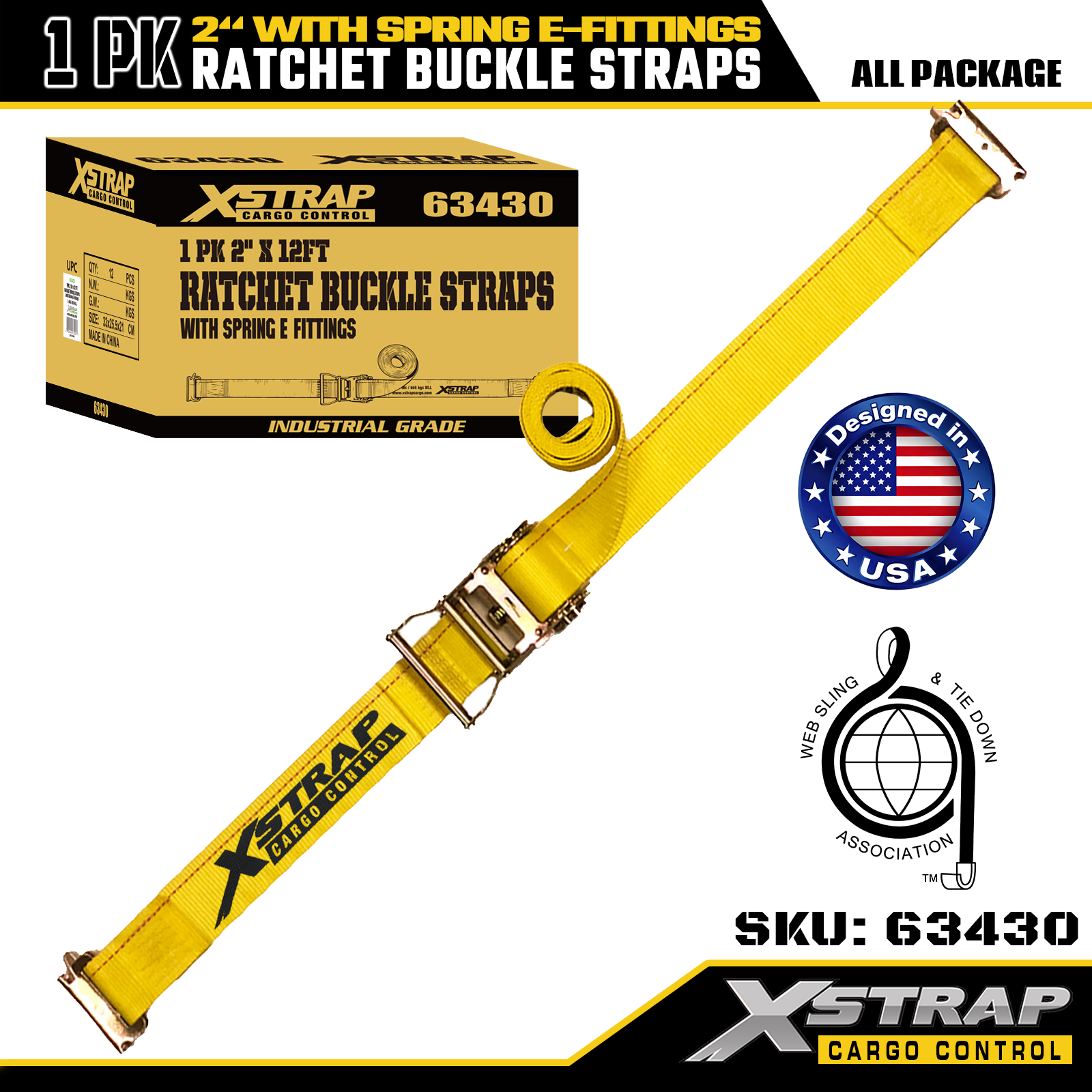 Xstrap 1 gói Dây buộc bằng vải polyester có bánh cóc với phụ kiện lò xo E, Dây đai bảo vệ hàng hóa hạng nặng 2" x 12', sức chứa 4401lbs (1467lbs) cho Xe tải, Máy cắt cỏ, ATV