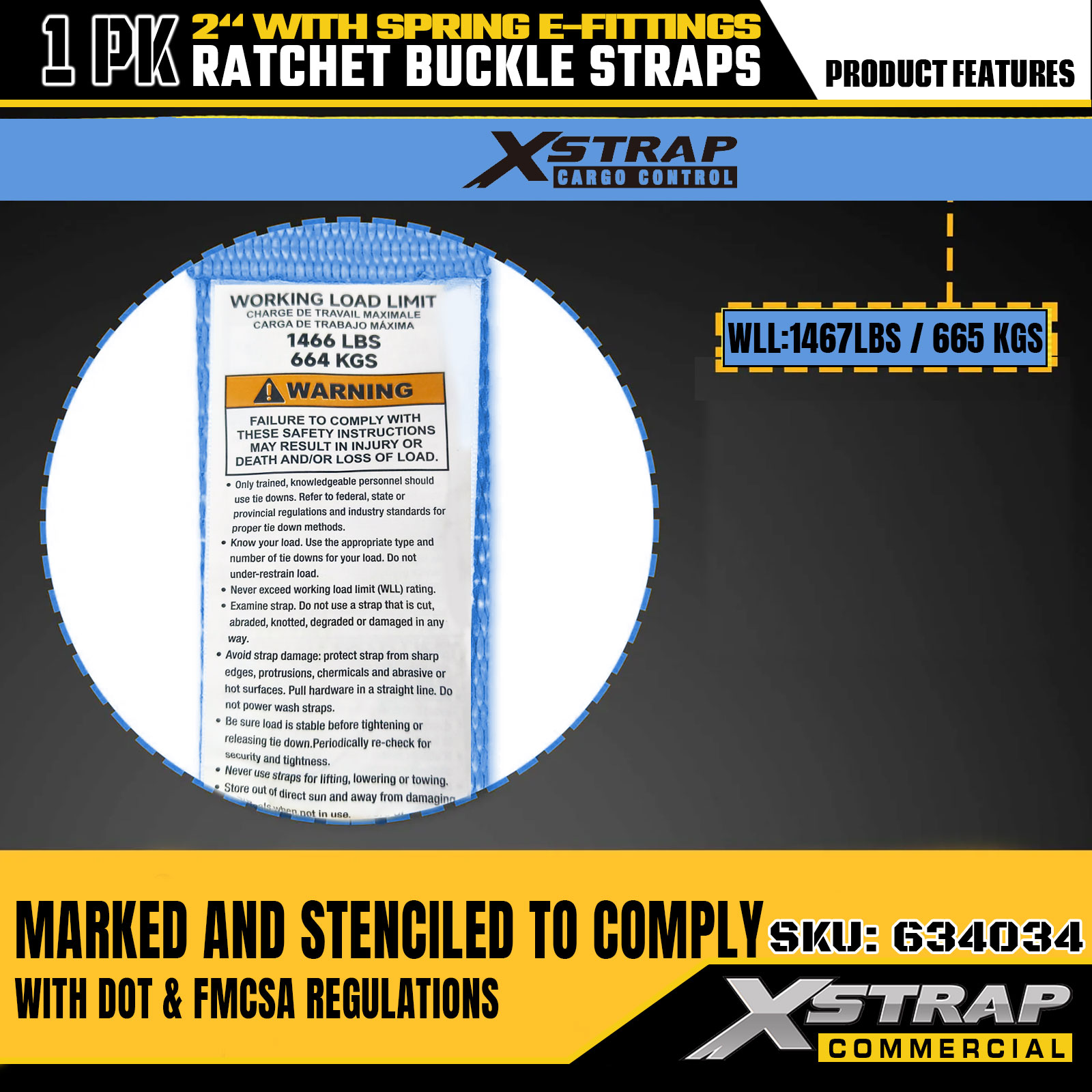 - Đánh dấu công suất tải rõ ràng cho ứng dụng an toàn: Được dán nhãn rõ ràng với tải trọng làm việc an toàn 1467 lbs (SWL) và độ bền đứt tối đa 4401 lbs. Cung cấp hướng dẫn an toàn cần thiết để tránh quá tải, đảm bảo an ninh hàng hóa trong quá trình di chuyển và vận chuyển.