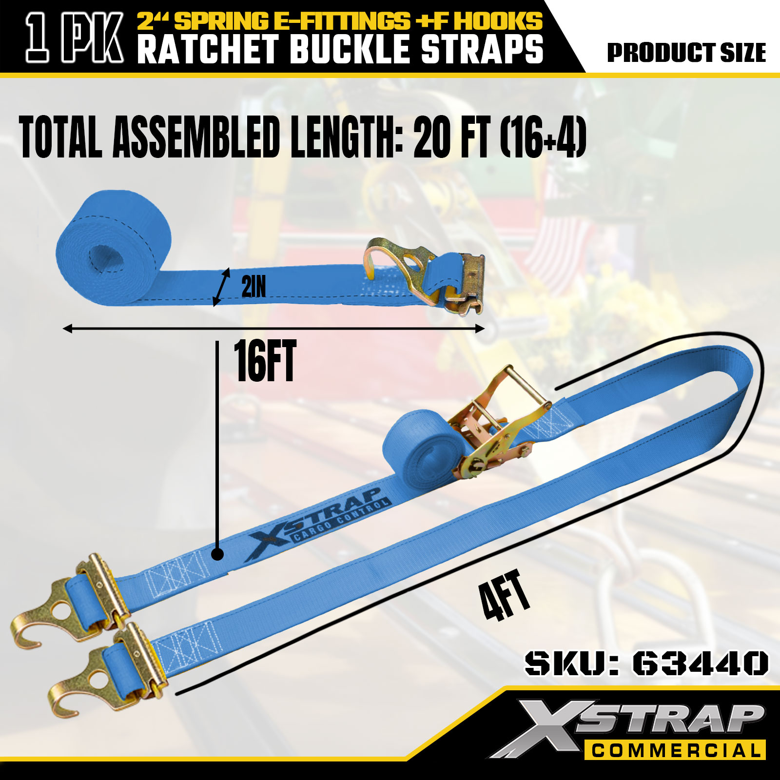 Xstrap 63440 Dây đeo bánh cóc hạng nặng 2" x 20' (1PK) - Vải màu xanh, Phụ kiện lò xo & móc F, 733 lbs SWL để di chuyển, vận chuyển hàng hóa và sử dụng xe tải