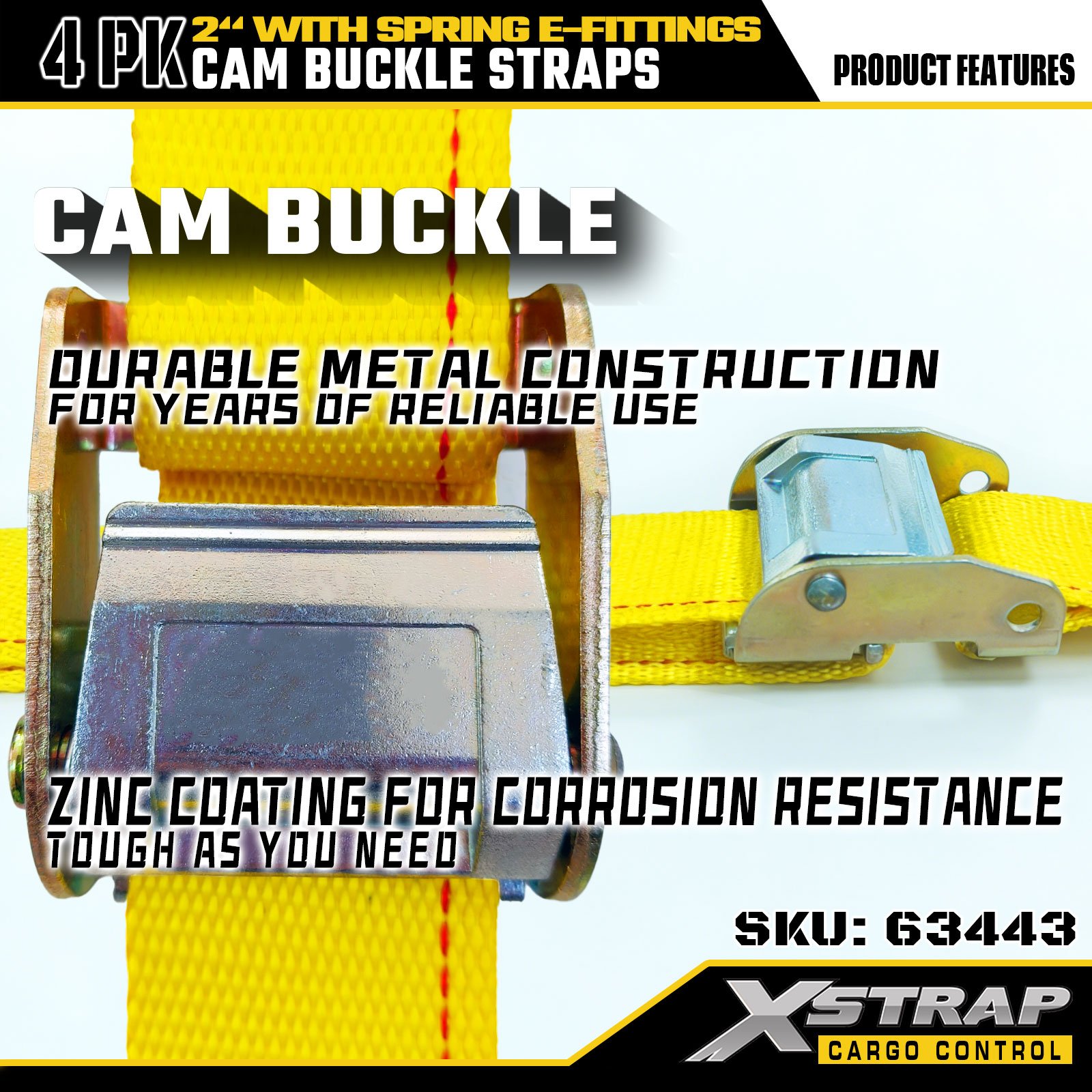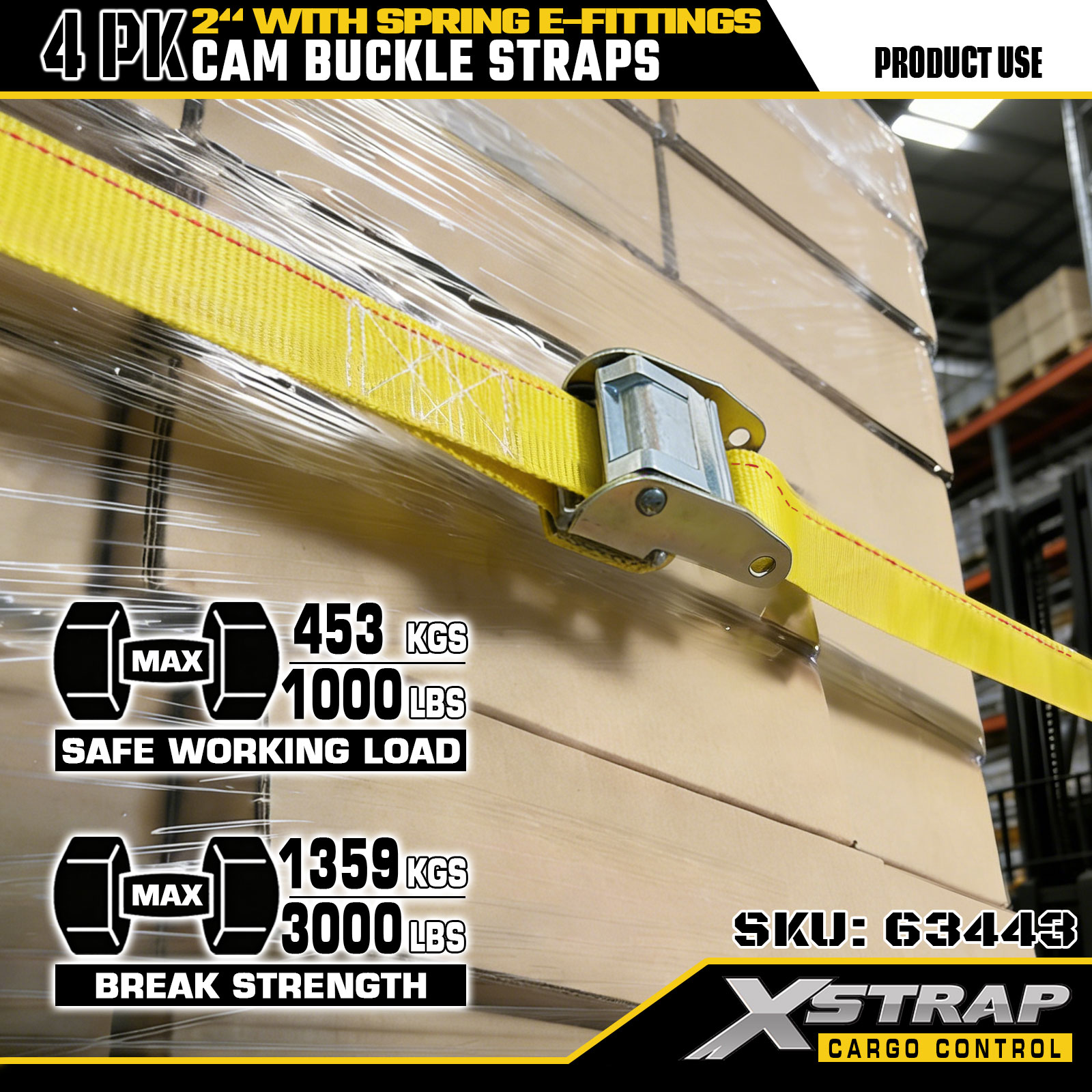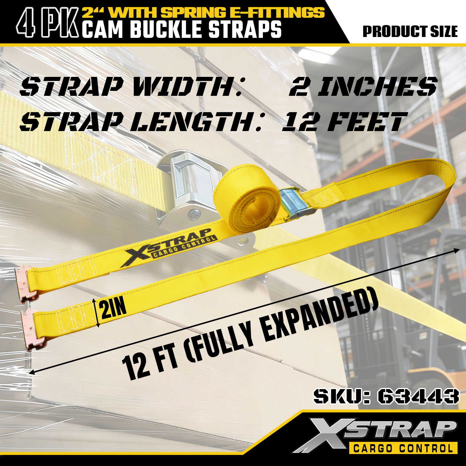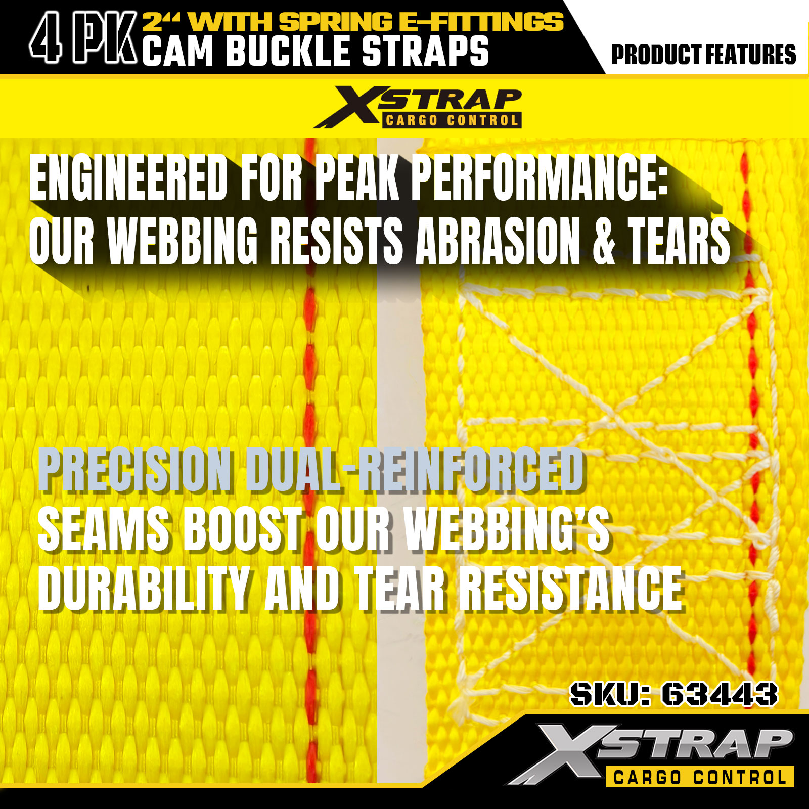 Xstrap 63443 4 Gói 2" x 12' Dây đai khóa cam màu vàng có phụ kiện lò xo E, 1000 lbs SWL & 453 lbs Độ bền đứt để xử lý, di dời và vận chuyển hàng hóa