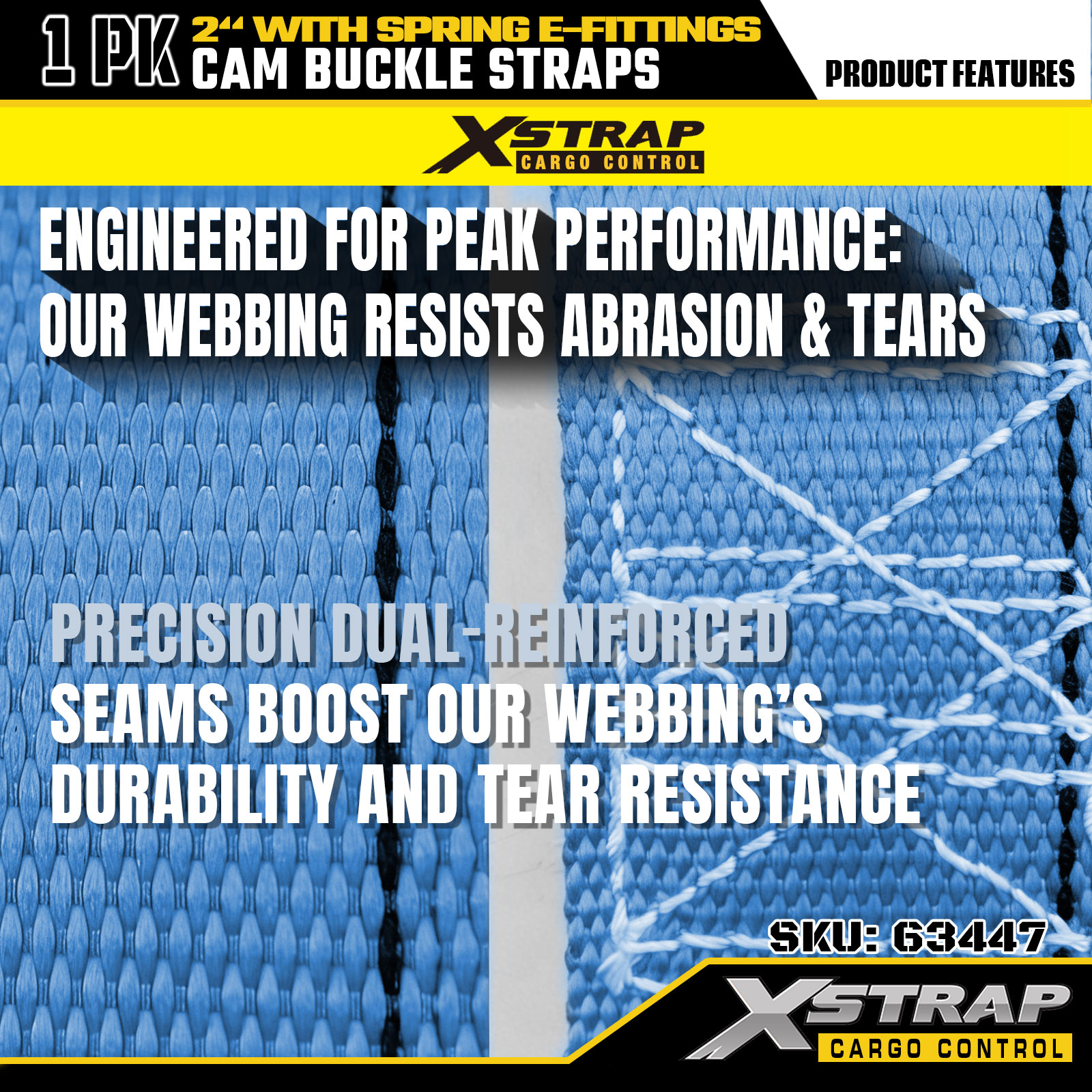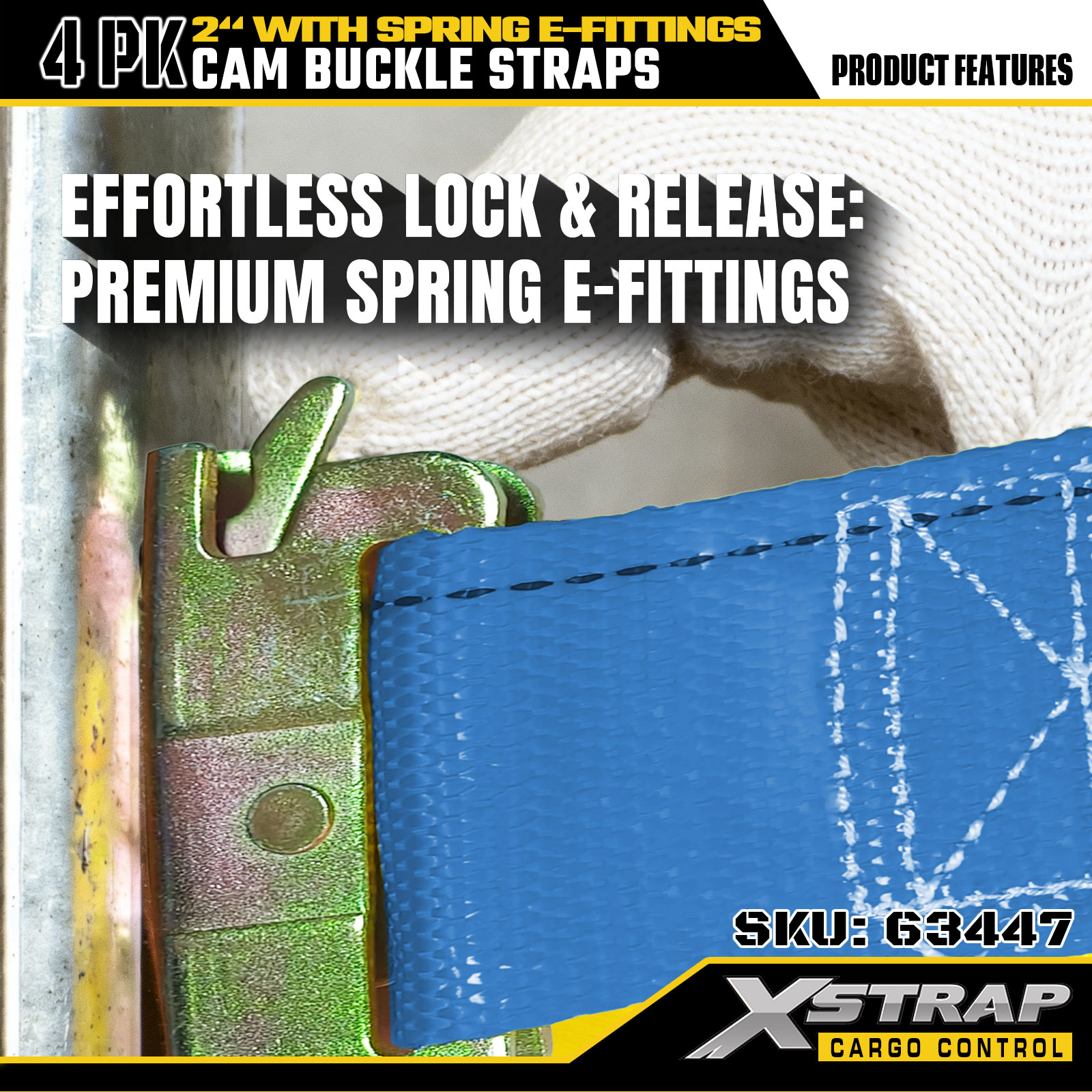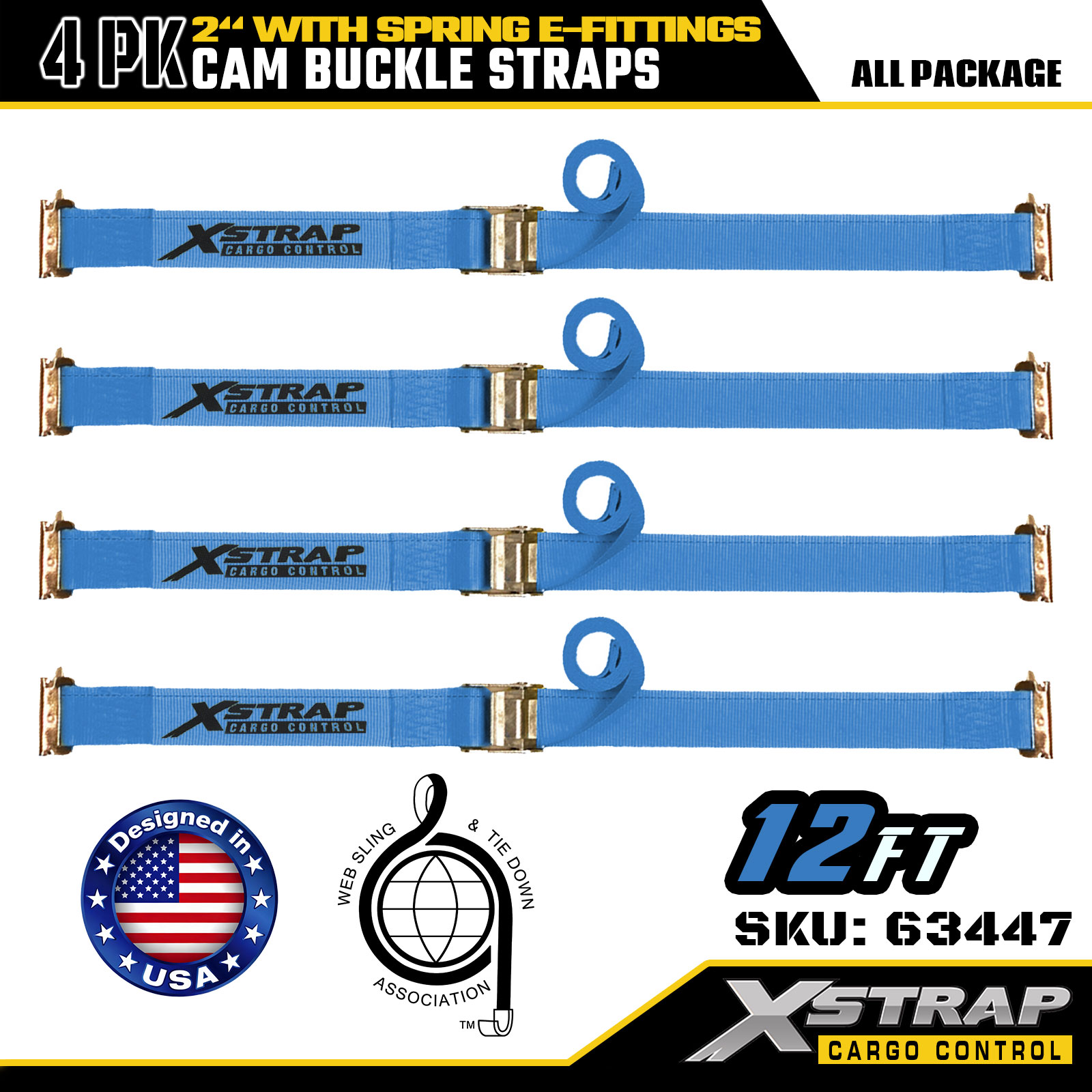 Xstrap 63447 4 Gói Dây đai Ratchet màu xanh lam 2" x 12' với Phụ kiện lò xo E & Móc F, 733 lbs SWL & Sức bền đứt 332 lbs để kiểm soát, di chuyển và vận chuyển hàng hóa