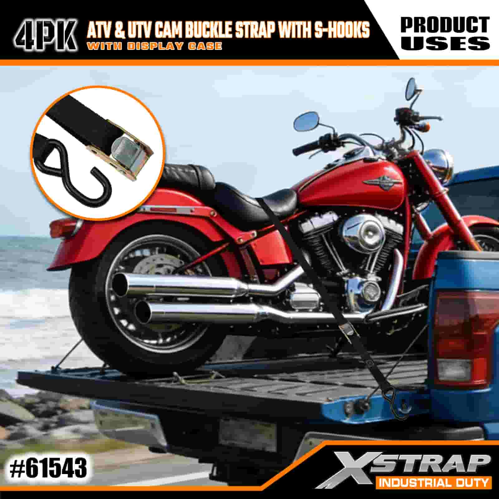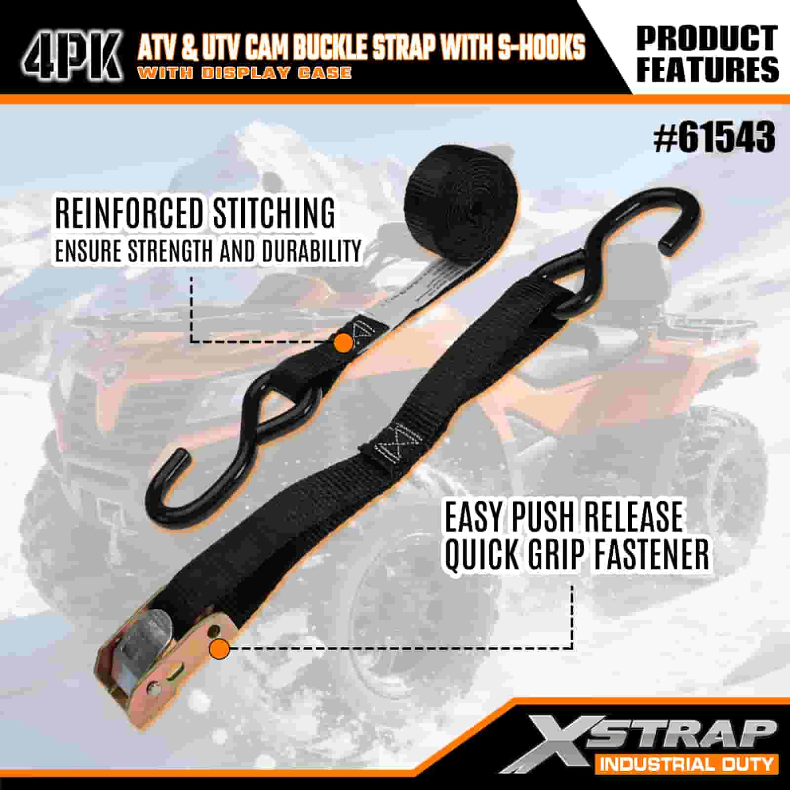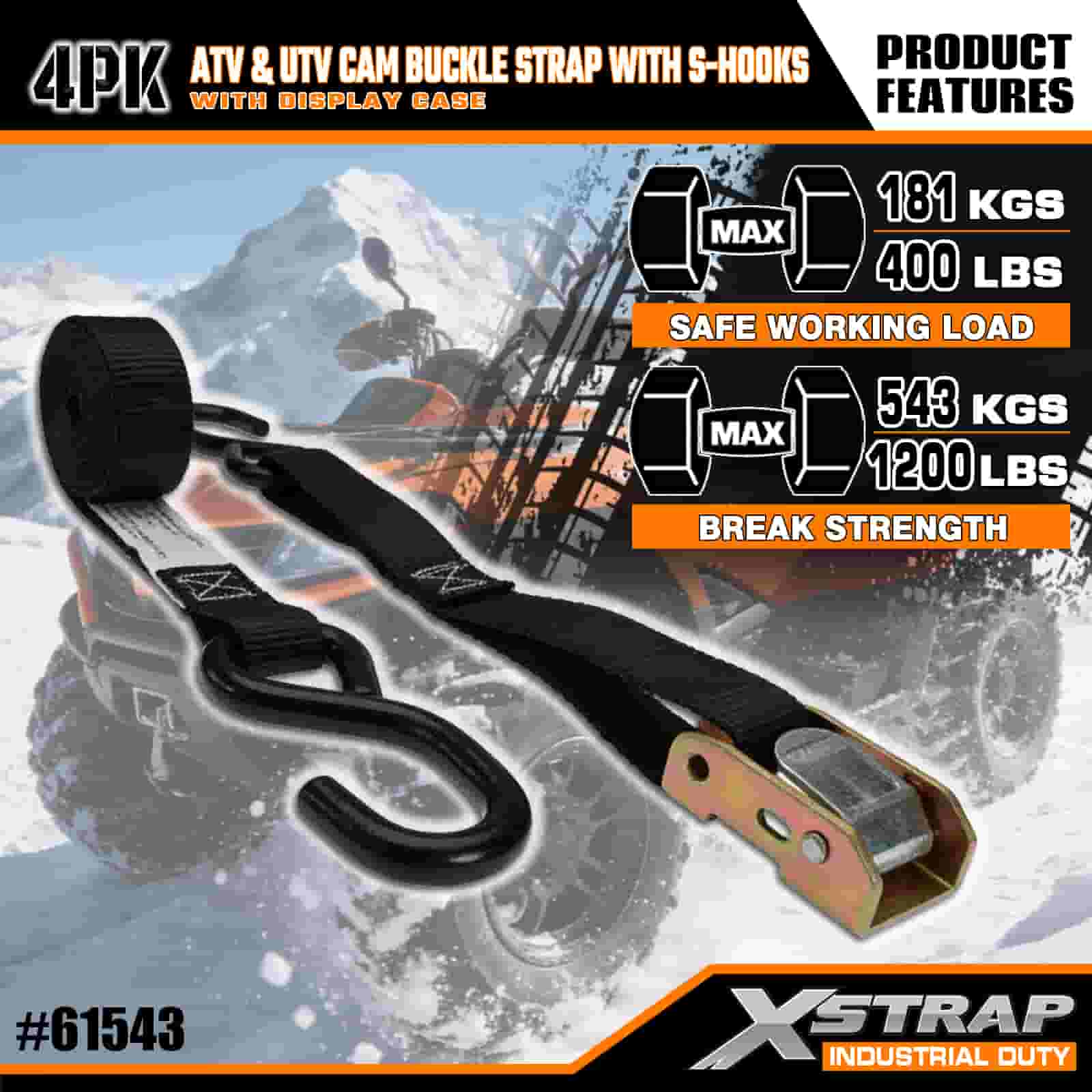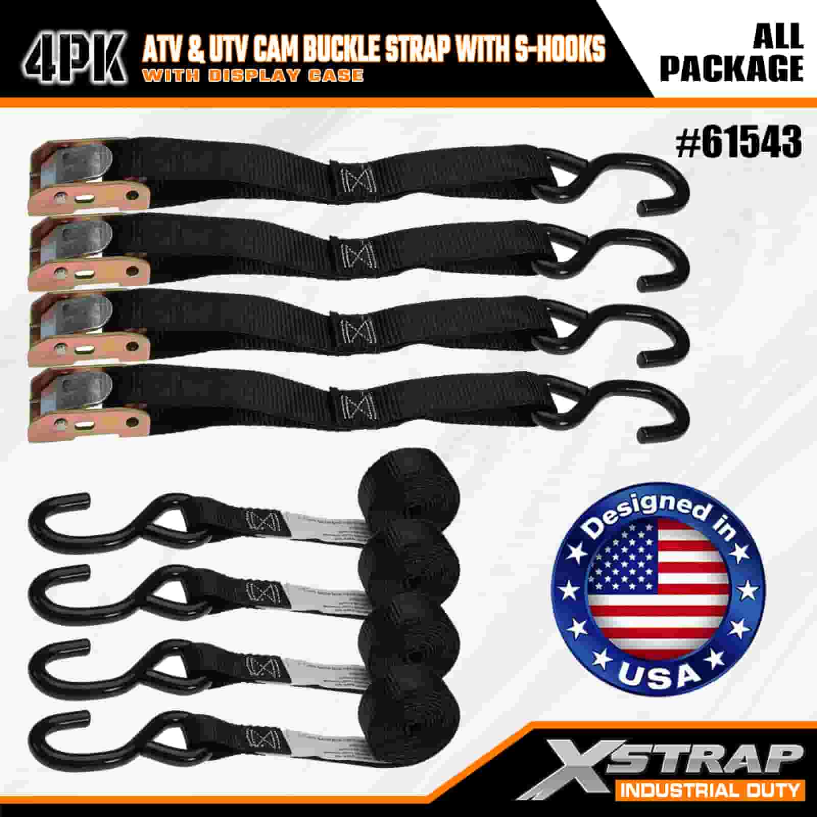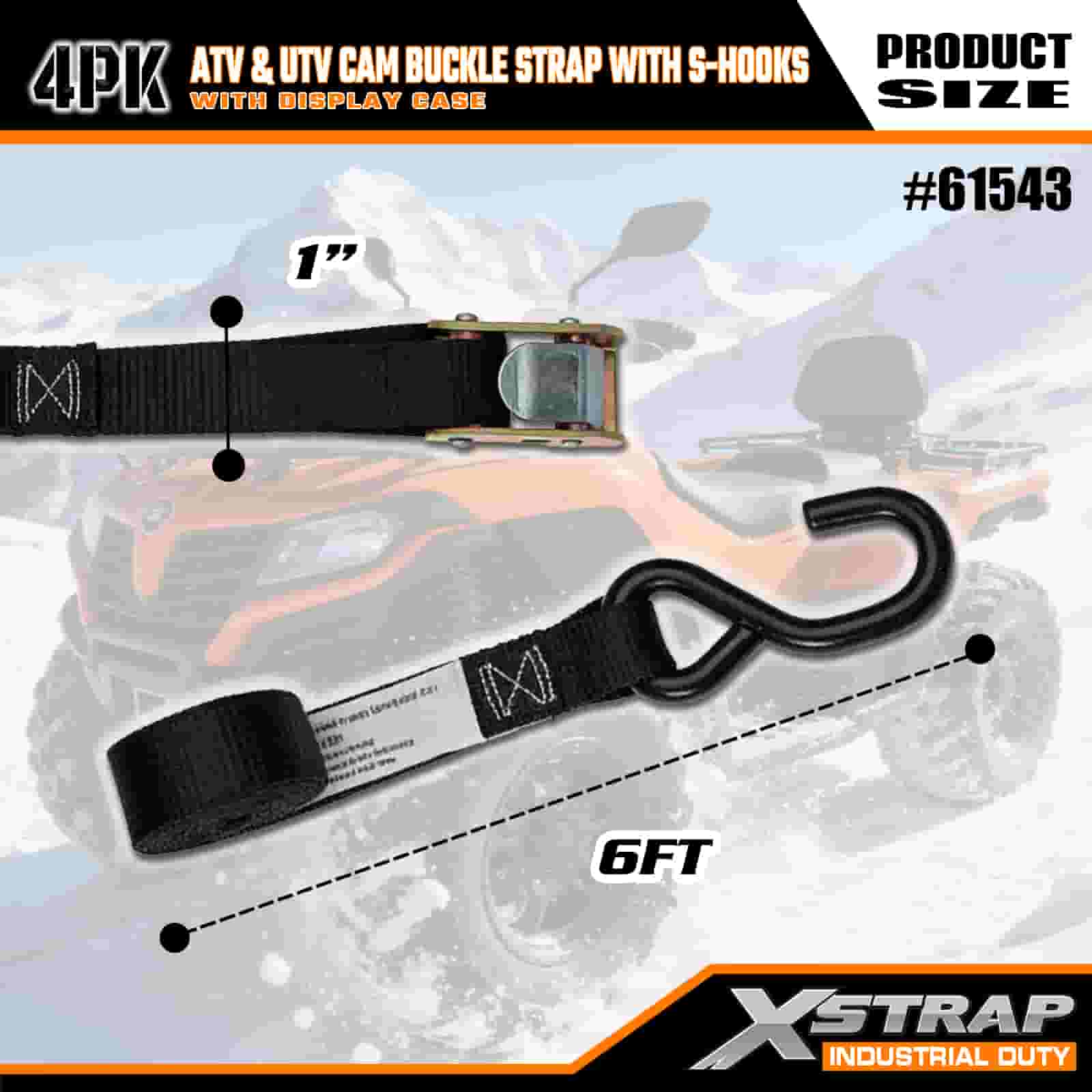 Dây đeo khóa Xstrap 4PK ATV & AUV Cam có móc chữ S, Dây đeo buộc xuống bằng polyester 1" x 6' Kéo dây đeo khóa Ratchet, Dây buộc chắc chắn hàng hóa có sức chứa 400 lbs với Móc chữ S dành cho Chuyên gia nghiêm túc để cố định Rơ moóc chở hàng, Rơ moóc giường phẳng, Thuyền trượt tuyết, Ô tô nhỏ.