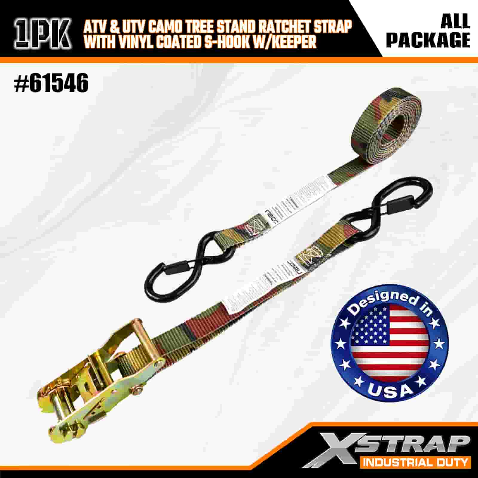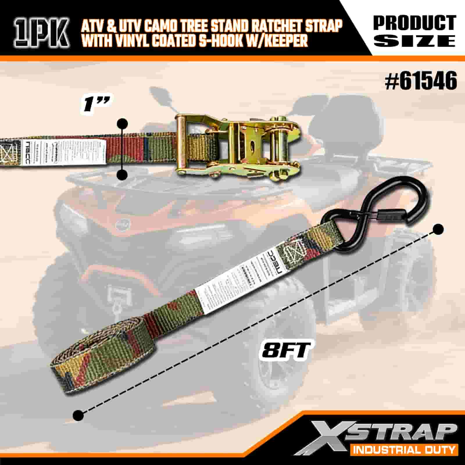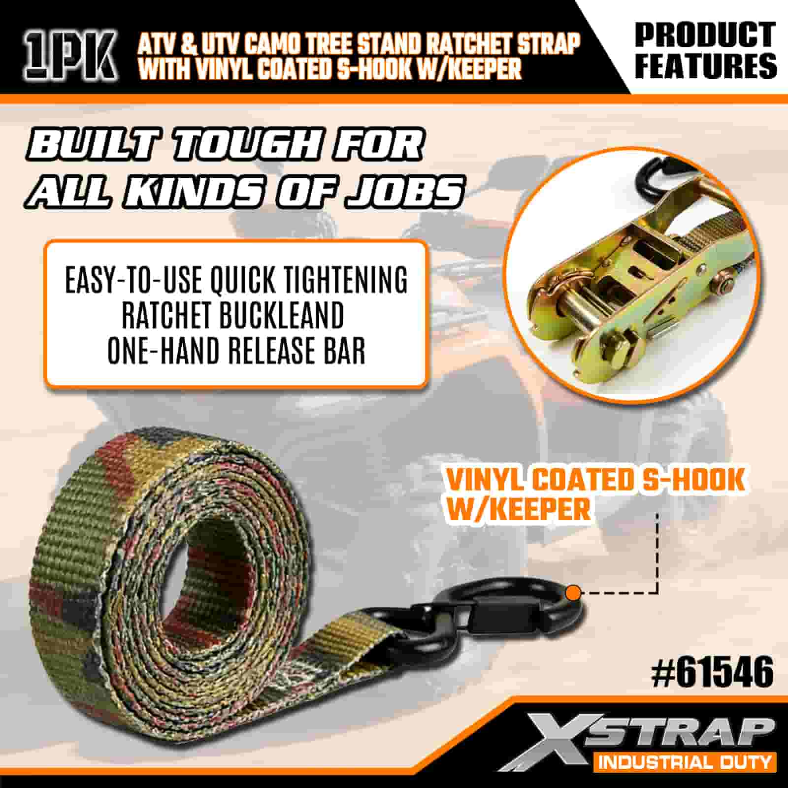 Dây đeo Ratchet Xstrap với móc chữ S an toàn được phủ nhựa Vinyl, Dây đeo buộc xuống bằng polyester 1” x 8' Dây đeo bánh cóc, Dây đai buộc hàng hóa có sức chứa 666lbs với móc chữ S an toàn cho Rơ moóc, Thuyền trượt tuyết có rơ moóc giường phẳng, Ô tô nhỏ, Thiết bị nặng.