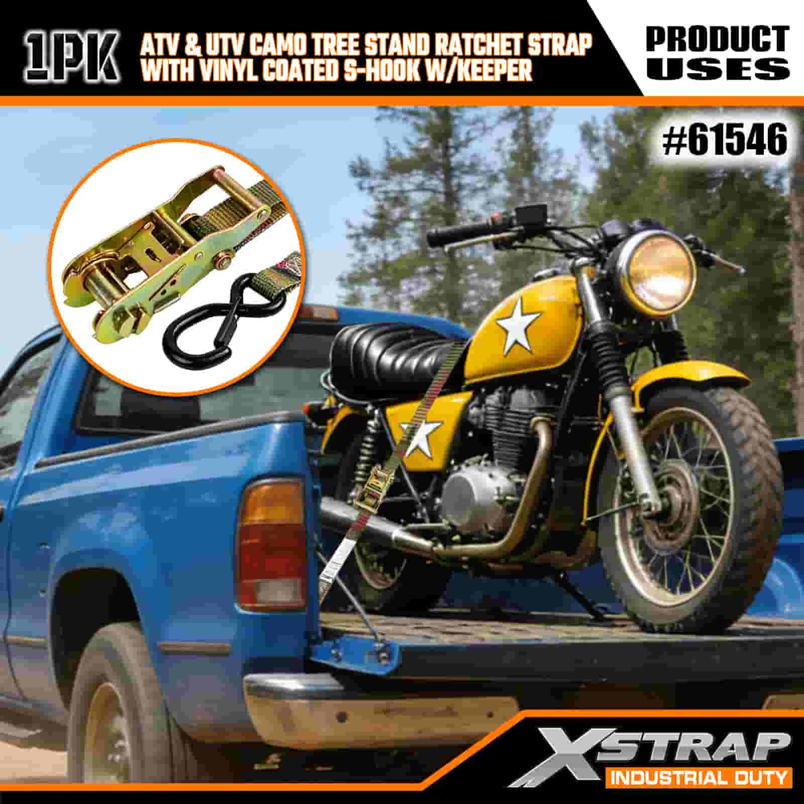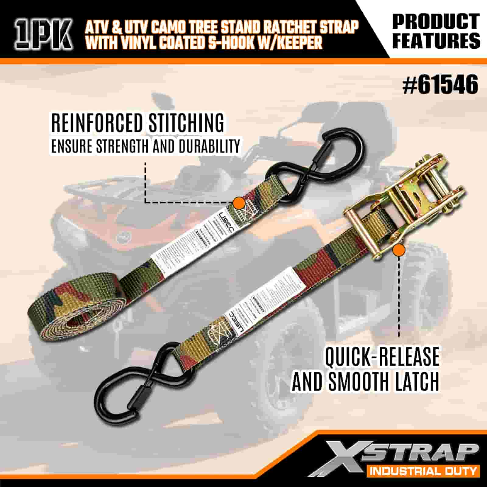 - Hoà nhập, khóa vào:Thiết kế ngụy trang giúp dây đeo hòa hợp với môi trường xung quanh ngoài trời, trong khi đường khâu gia cố và bánh cóc chịu lực cao giúp giữ chặt chiếc ATV, giá đỡ cây hoặc xe máy của bạn. Không còn lo lắng về việc chuyển tải trên địa hình gồ ghề.