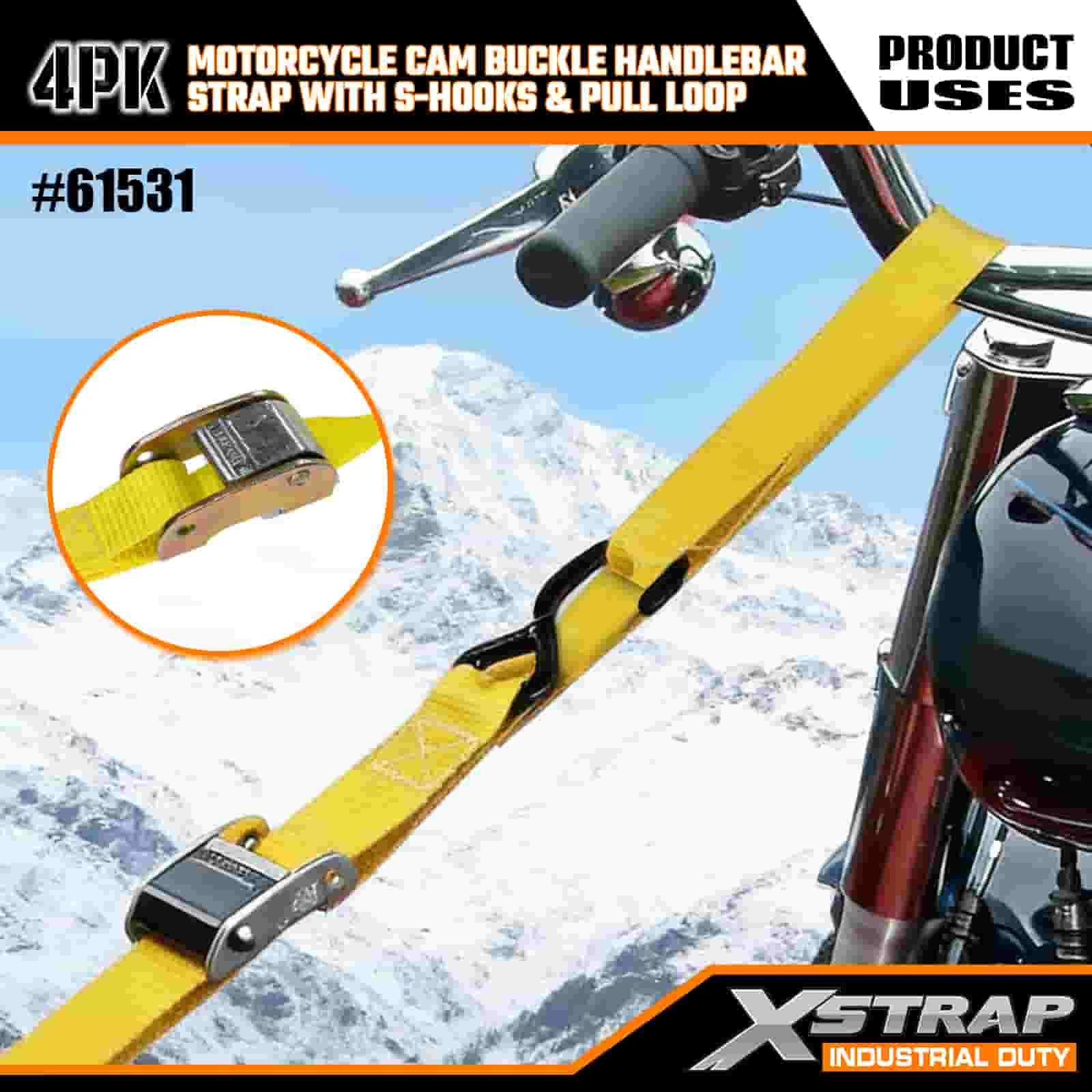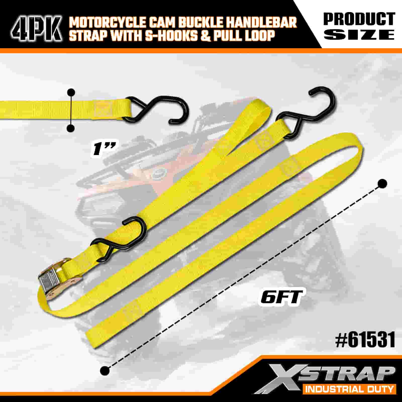 - Dây đai 6FT 4 gói để sử dụng cho xe máy: Được bán dưới dạng bộ 4 dây đeo (rộng 1 inch × dài 6 feet), lý tưởng để cố định xe máy, tay lái và thiết bị nhỏ trên thùng xe tải hoặc trong quá trình vận chuyển.