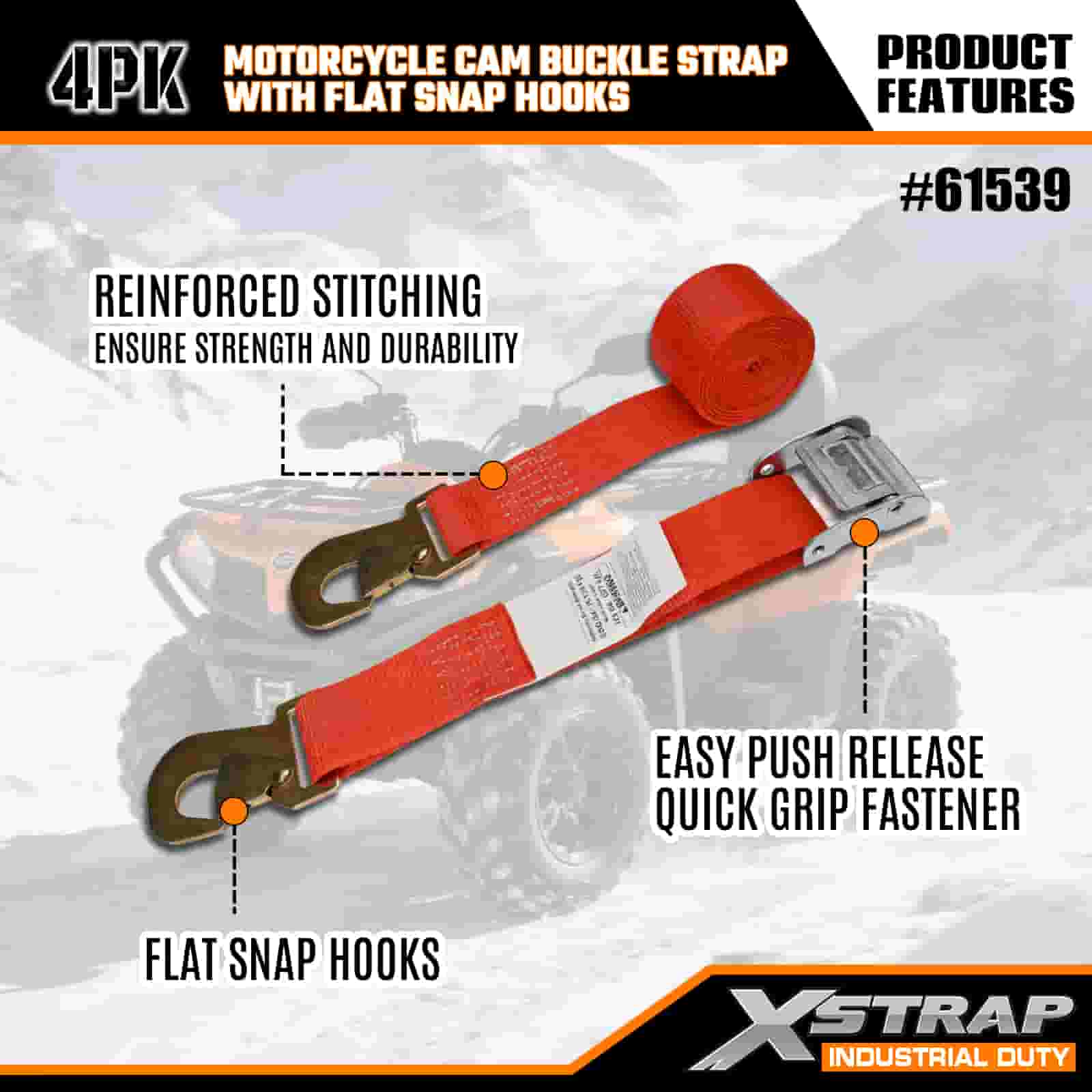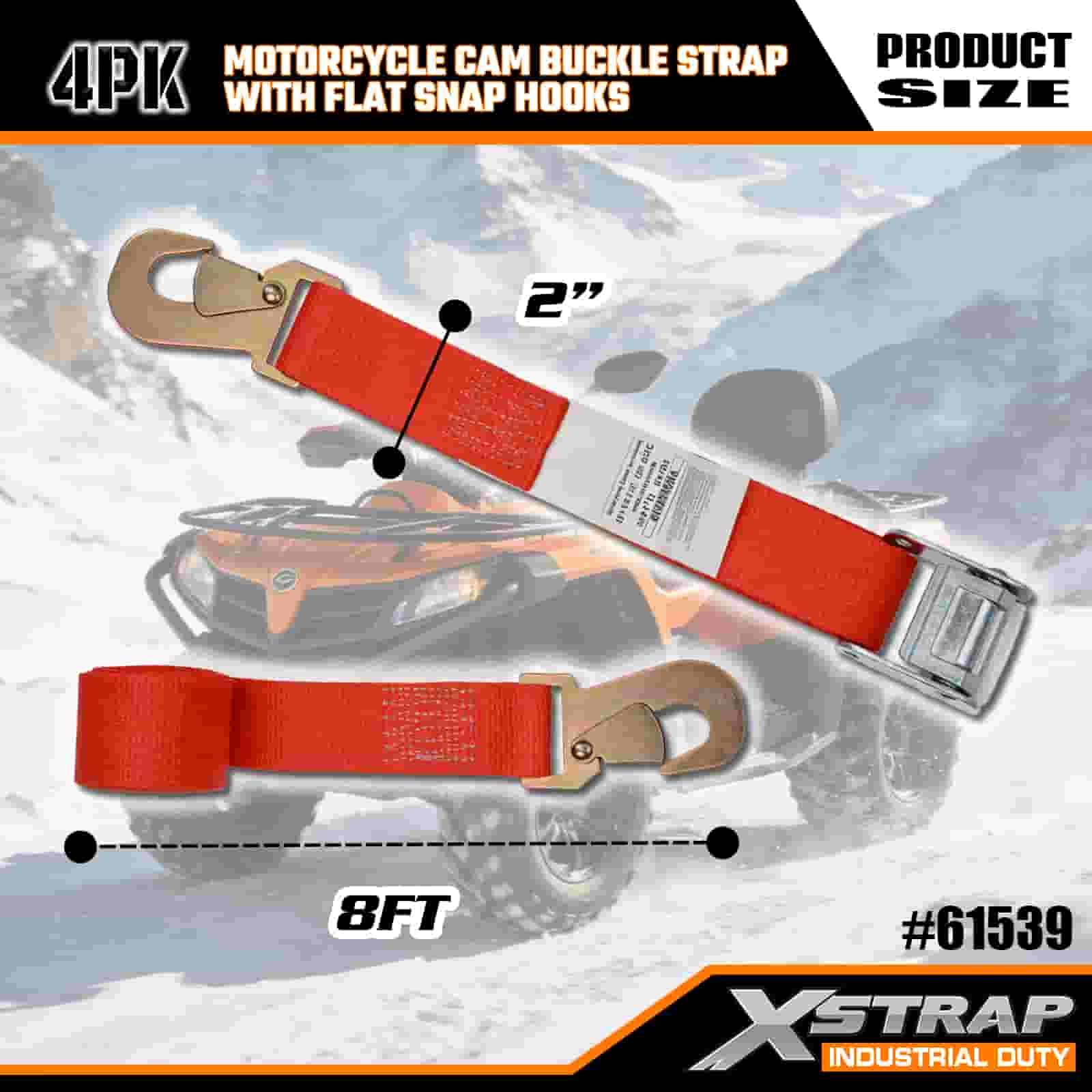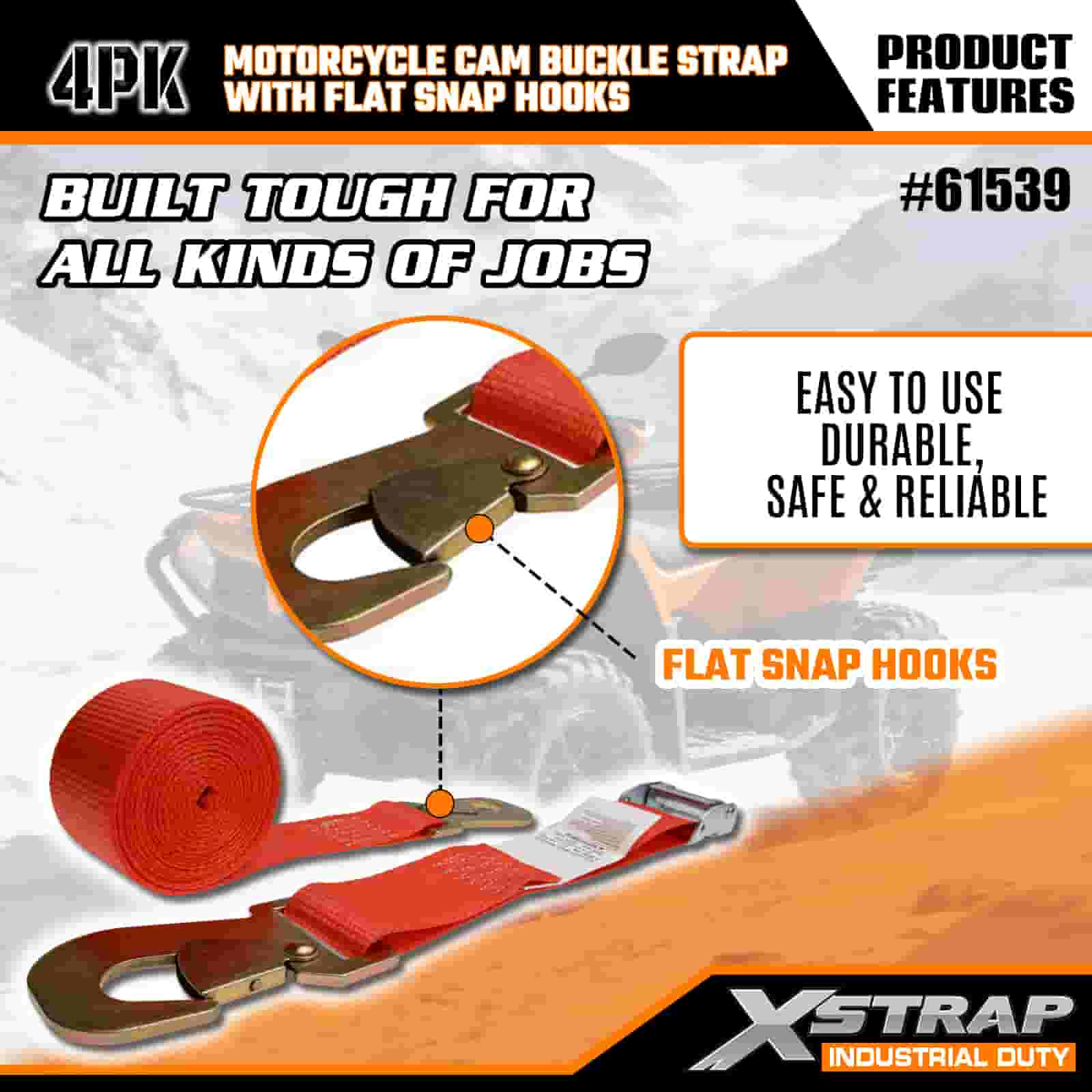 Dây đeo khóa cam xe máy Xstrap 4PK có móc khóa phẳng, dây buộc bằng polyester 2” x 8' Dây đeo có khóa kéo Ratchet, Dây buộc chắc chắn hàng hóa có sức chứa 400 lbs với móc khóa phẳng dành cho chuyên gia nghiêm túc để bảo vệ xe moóc chở hàng, xe moóc giường phẳng, thuyền trượt tuyết, ô tô nhỏ.