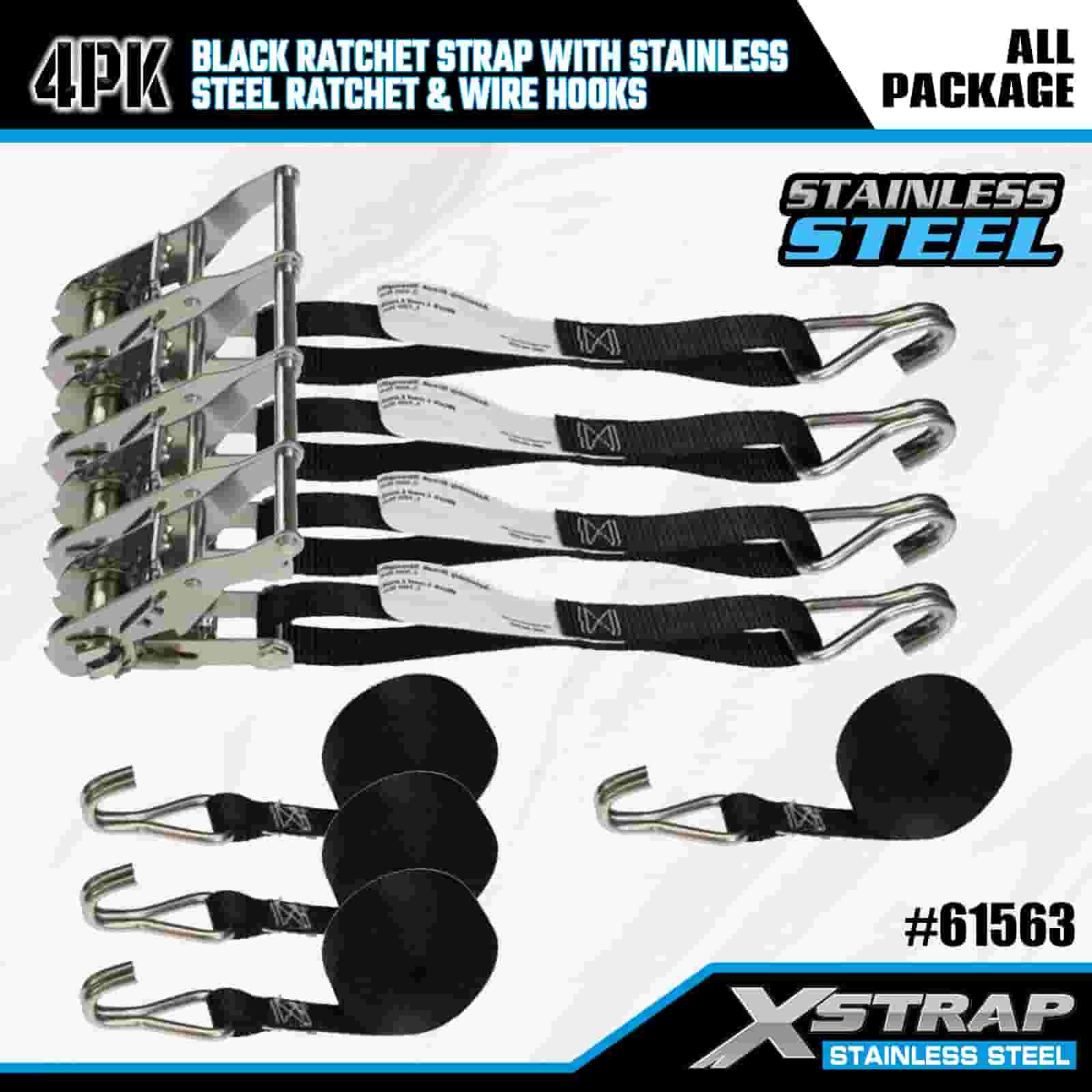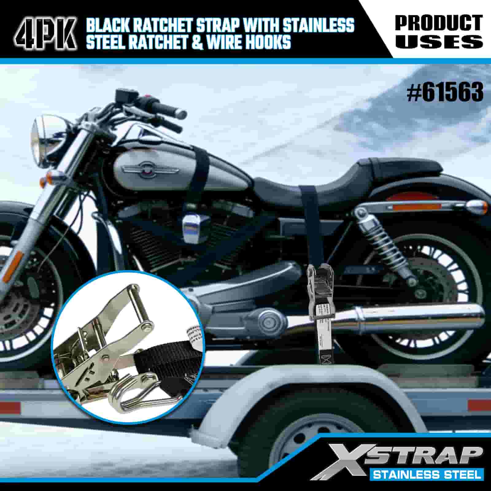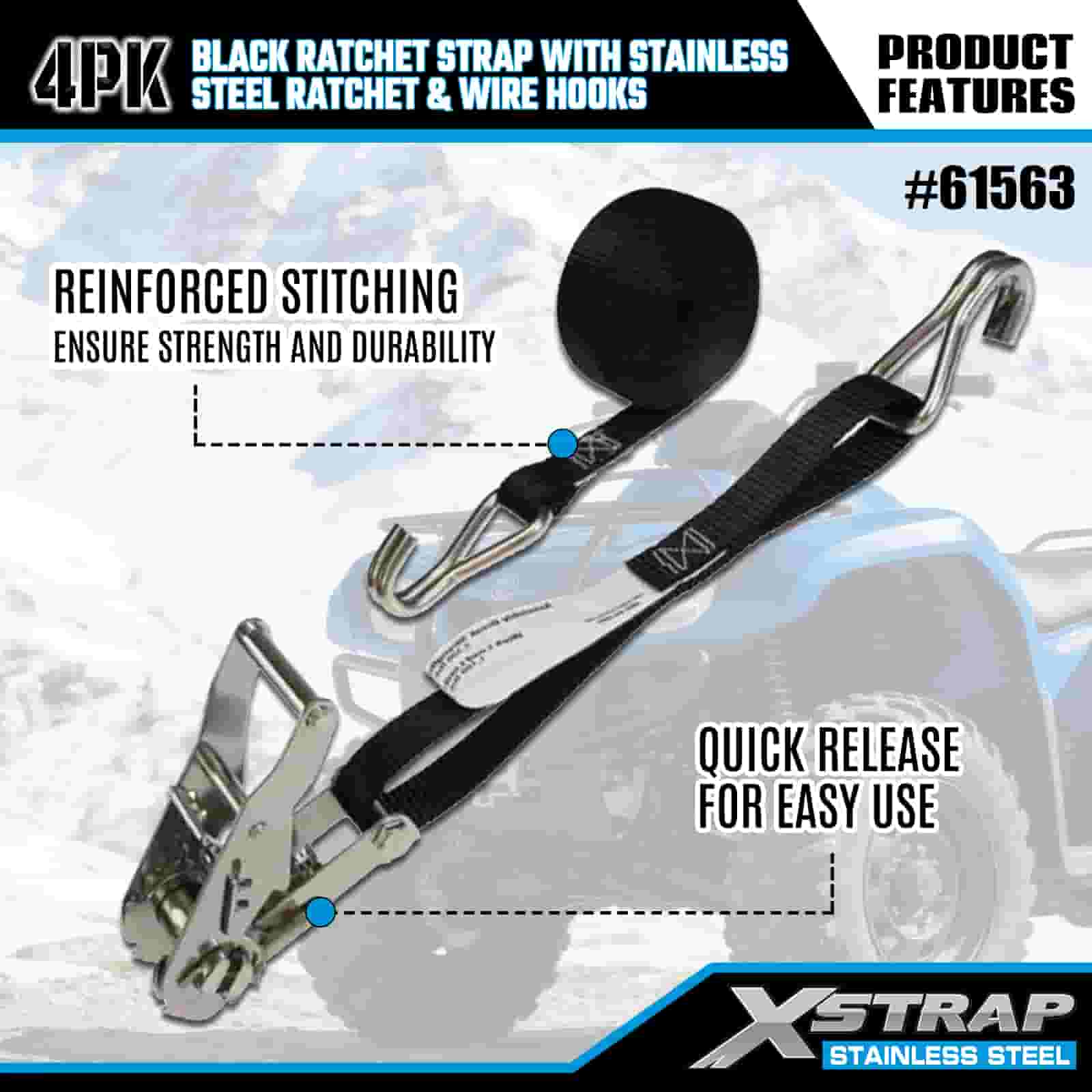 Dây đeo Ratchet màu đen Xstrap 4PK với bánh cóc và móc dây bằng thép không gỉ, Dây đeo buộc xuống bằng polyester 1” x 10 ’ Dây đeo bánh cóc, Dây buộc chắc chắn hàng hóa có công suất 1000lbs có móc dây cho xe moóc, thuyền trượt tuyết rơ moóc giường phẳng, ô tô nhỏ, thiết bị nặng.
