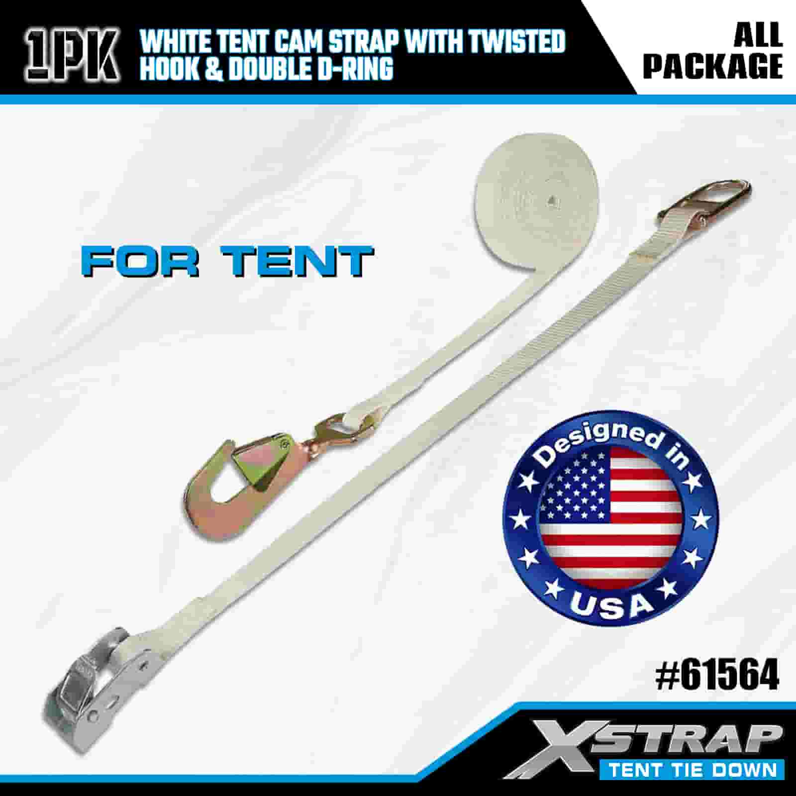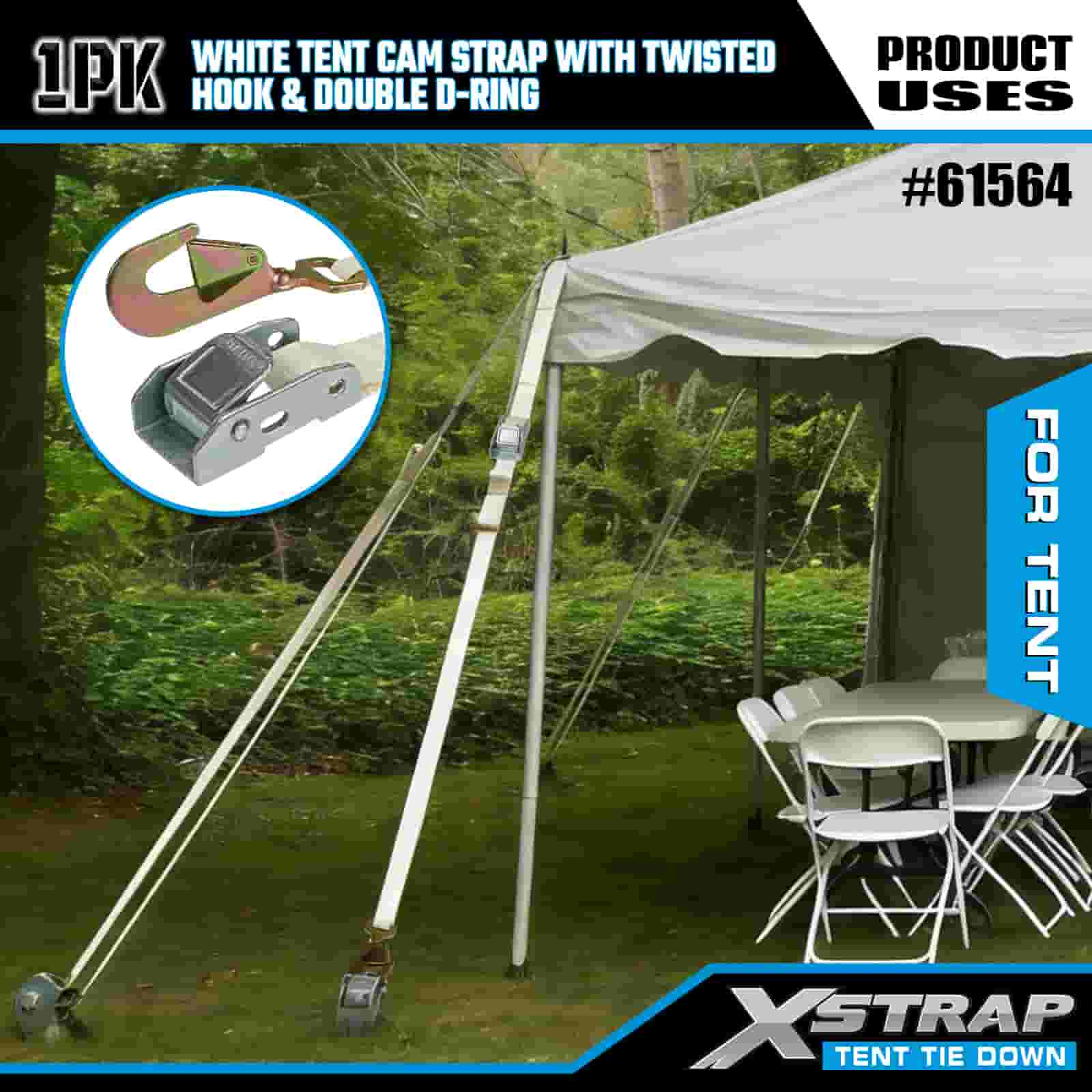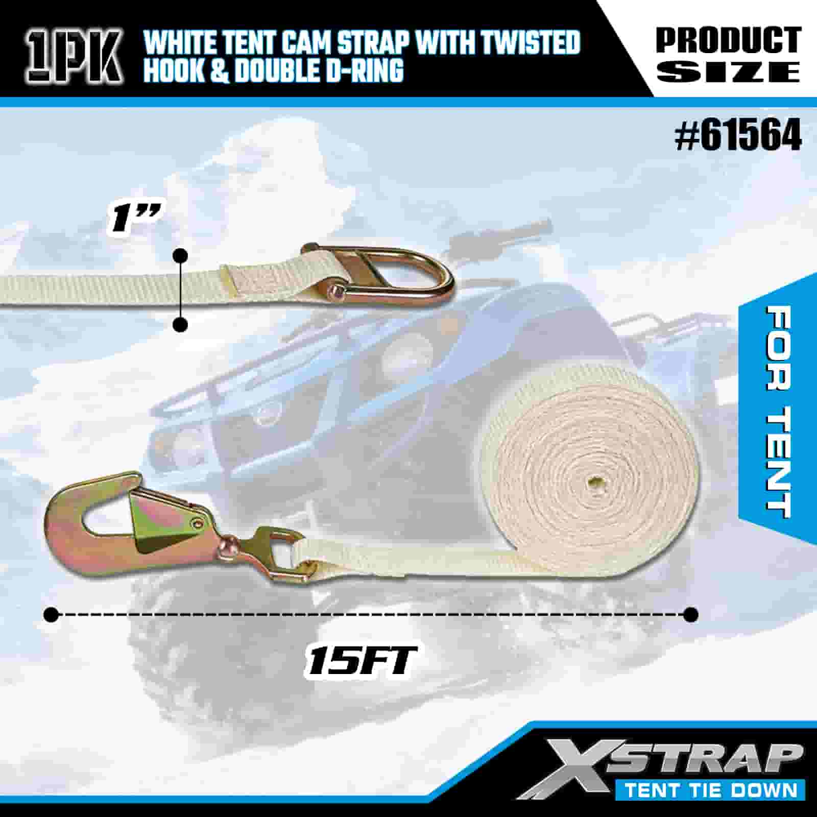 Dây đeo cam lều Xstrap màu trắng có móc xoắn và vòng chữ D đôi, Dây đeo buộc xuống bằng polyester 1” x 15’ Dây đeo bánh cóc, Dây buộc chắc chắn hàng hóa có công suất 440lbs với Móc xoắn và vòng D đôi để kiểm soát hàng hóa, cố định lều.