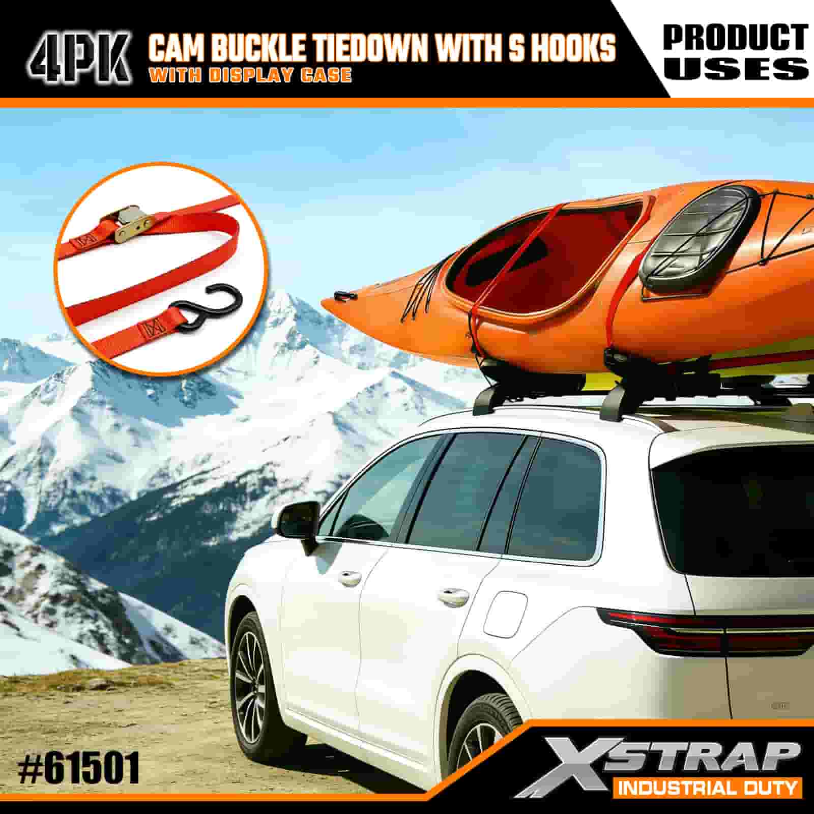 - Bộ 4 chiếc tiện dụng có Hộp trưng bày: Được bán theo bộ 4 chiếc (có bao bì trưng bày) để sử dụng theo lô và mỗi dây đeo có chiều rộng 2 inch × dài 6 feet, lý tưởng để bảo đảm các vật dụng như thuyền kayak, thiết bị ngoài trời hoặc hàng hóa.