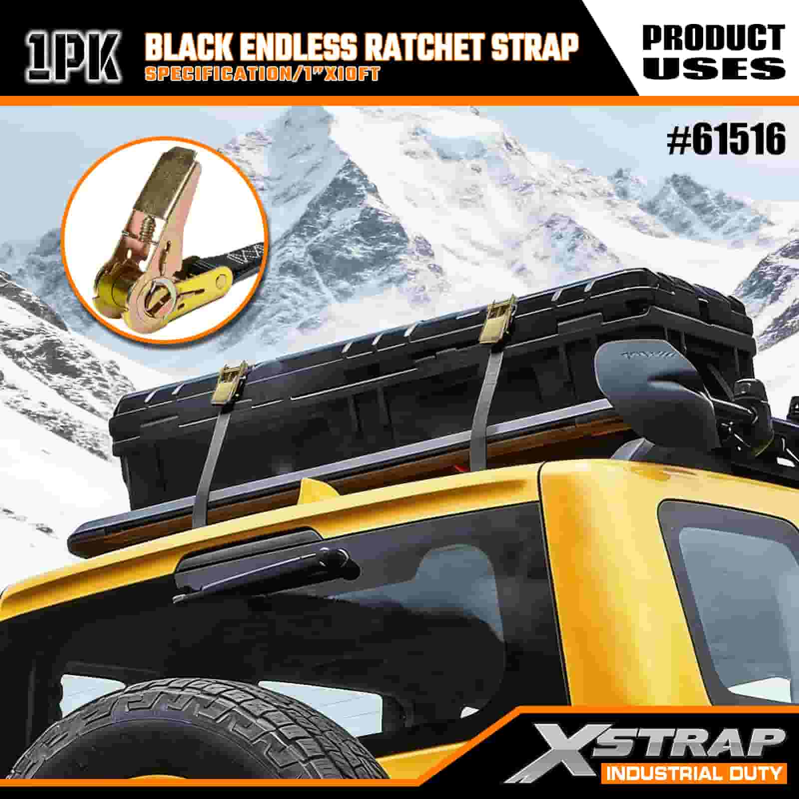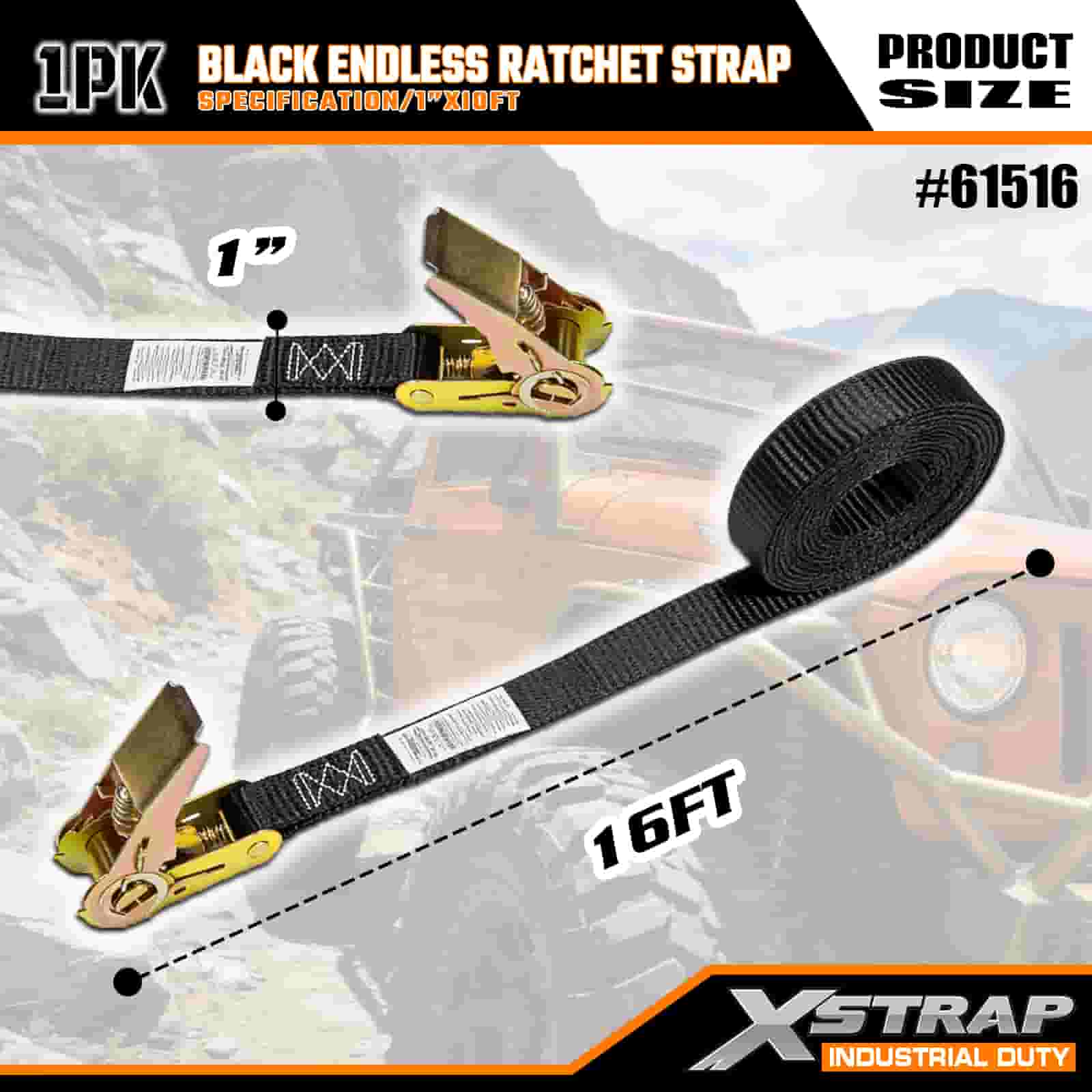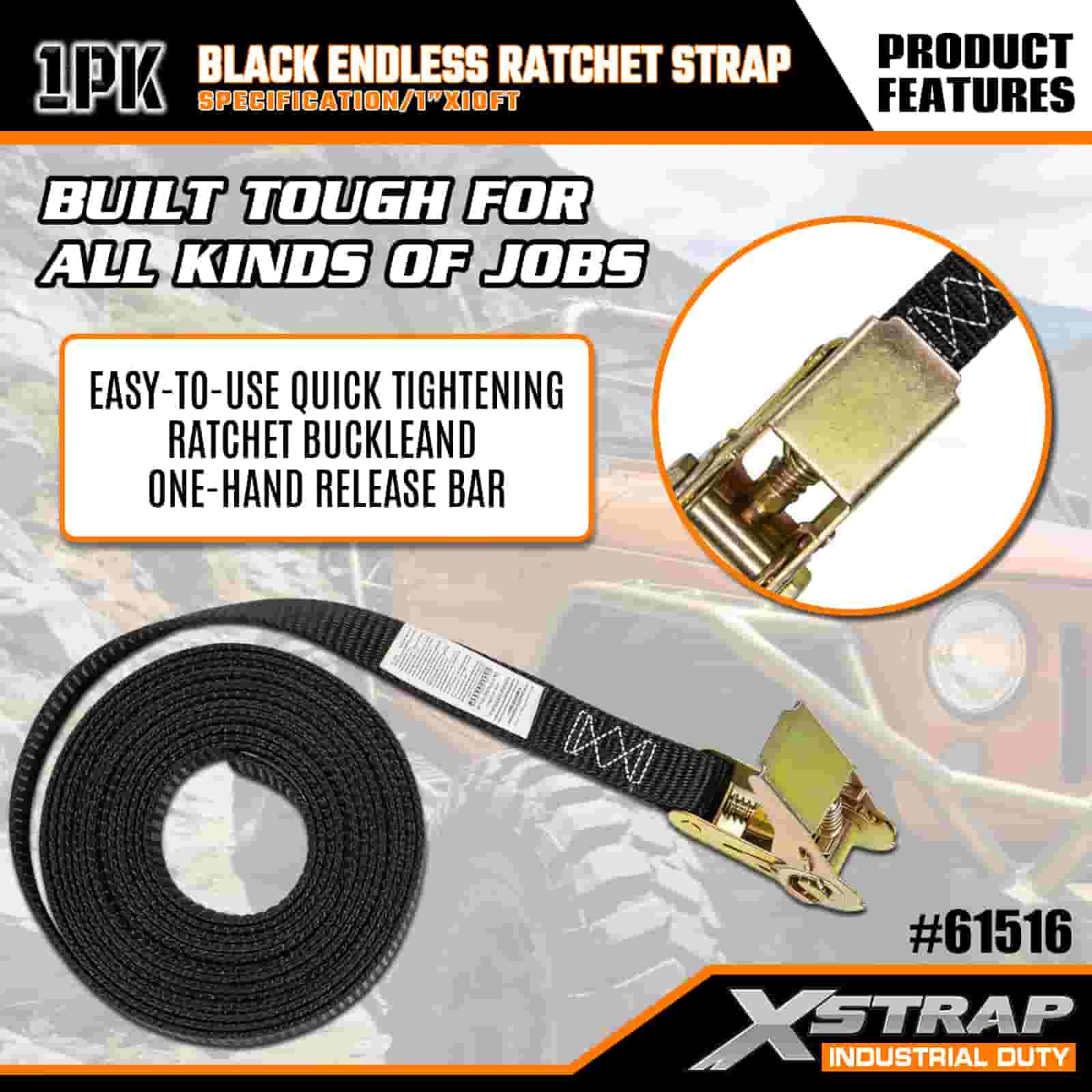 Dây đeo Ratchet vô tận Xstrap màu đen, Dây đeo buộc xuống bằng polyester 1” x 10’ Dây đeo Ratchet kéo, Dây đai buộc hàng hóa có sức chứa 500lbs dành cho chuyên gia nghiêm túc để đảm bảo an toàn cho xe moóc chở hàng, xe kéo giường phẳng, thuyền trượt tuyết, ô tô nhỏ.