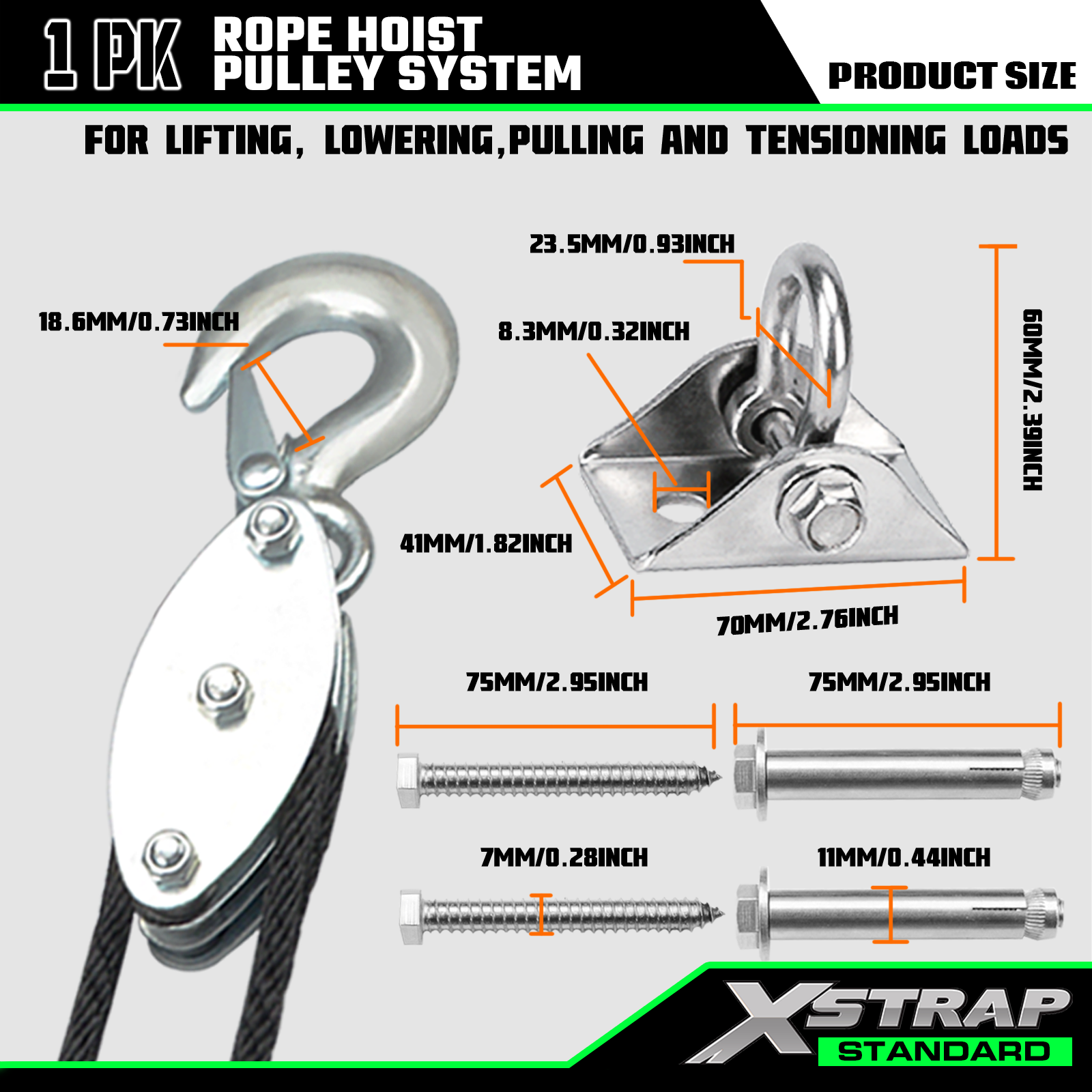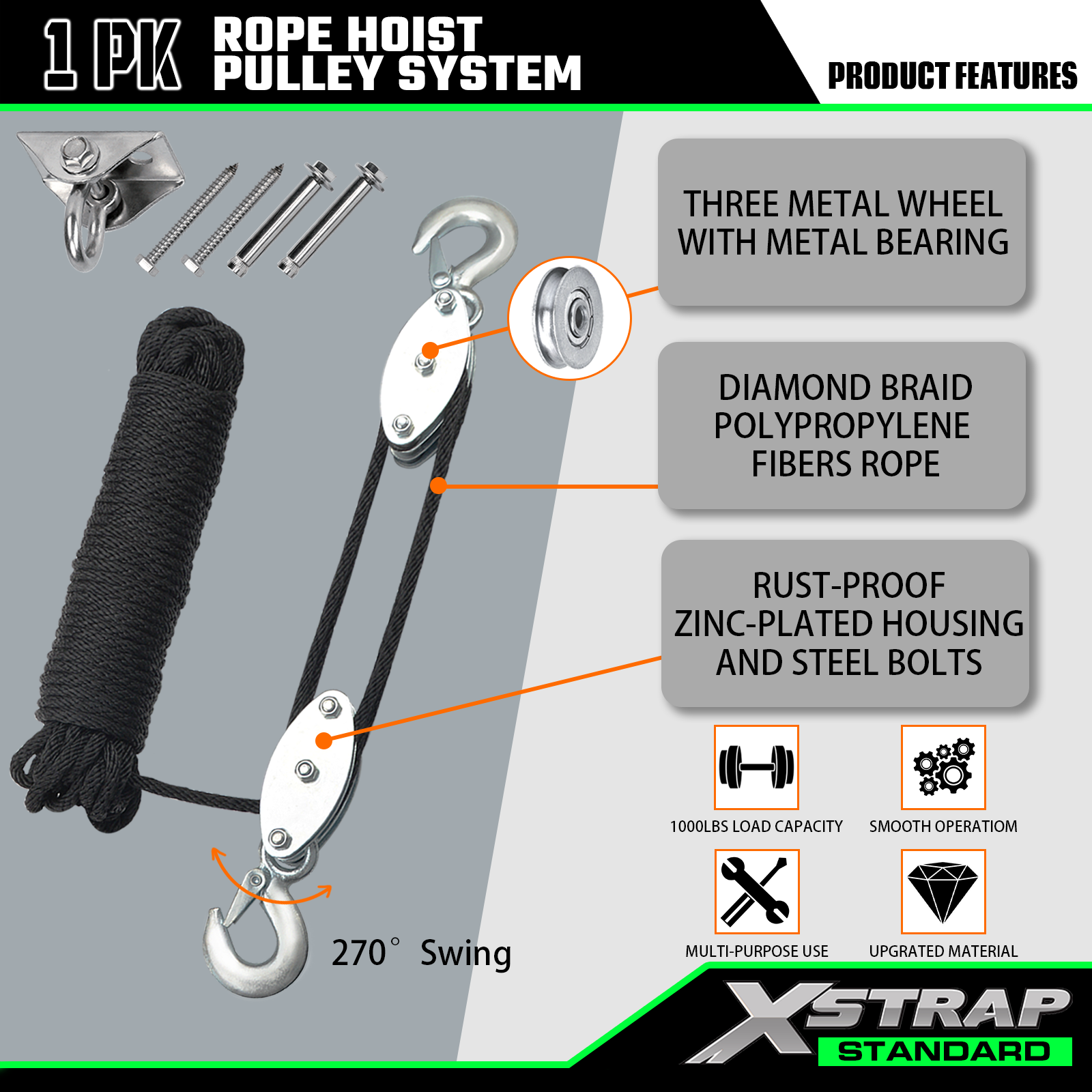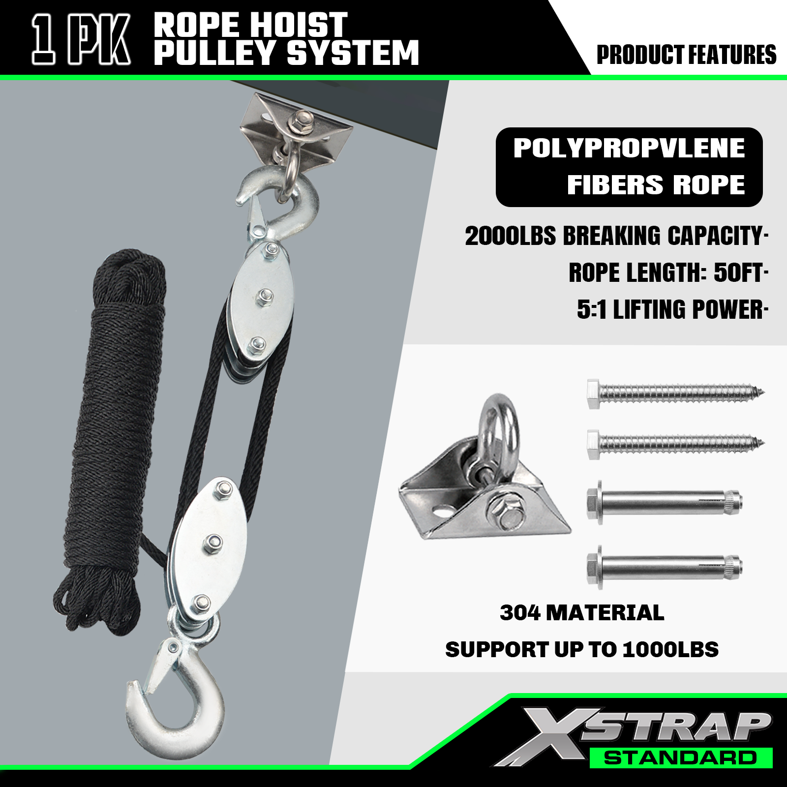 Hệ thống ròng rọc tời dây Xstrap AHLT0004 50 Ft 1000LB
