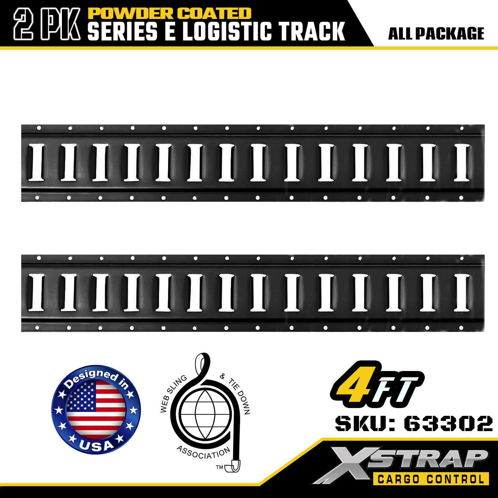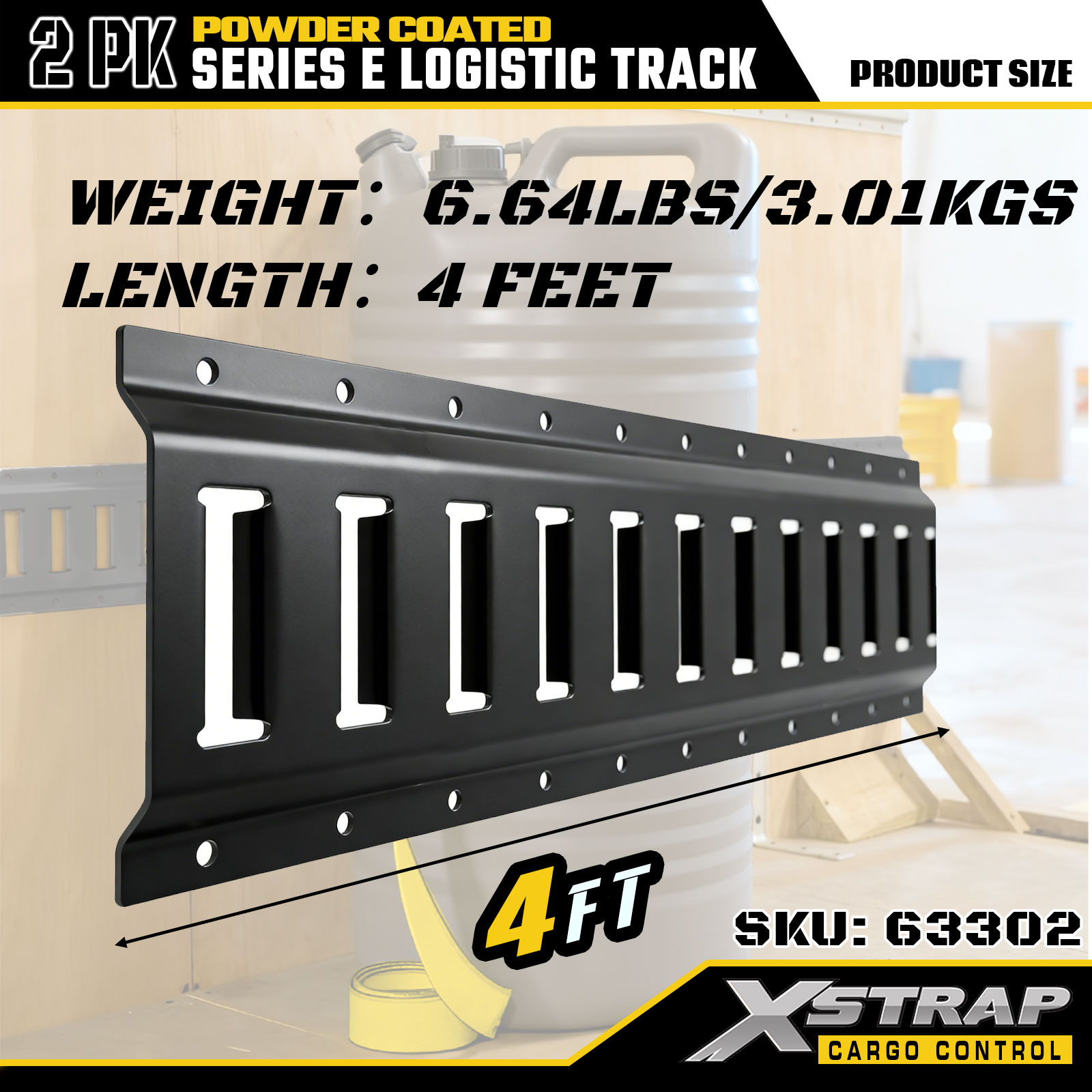 Xstrap 63302 4 ft Màu xám E Logistic Track - Thép 12 thước có sơn tĩnh điện, công suất 6000LBS, 2PK để kiểm soát hàng hóa