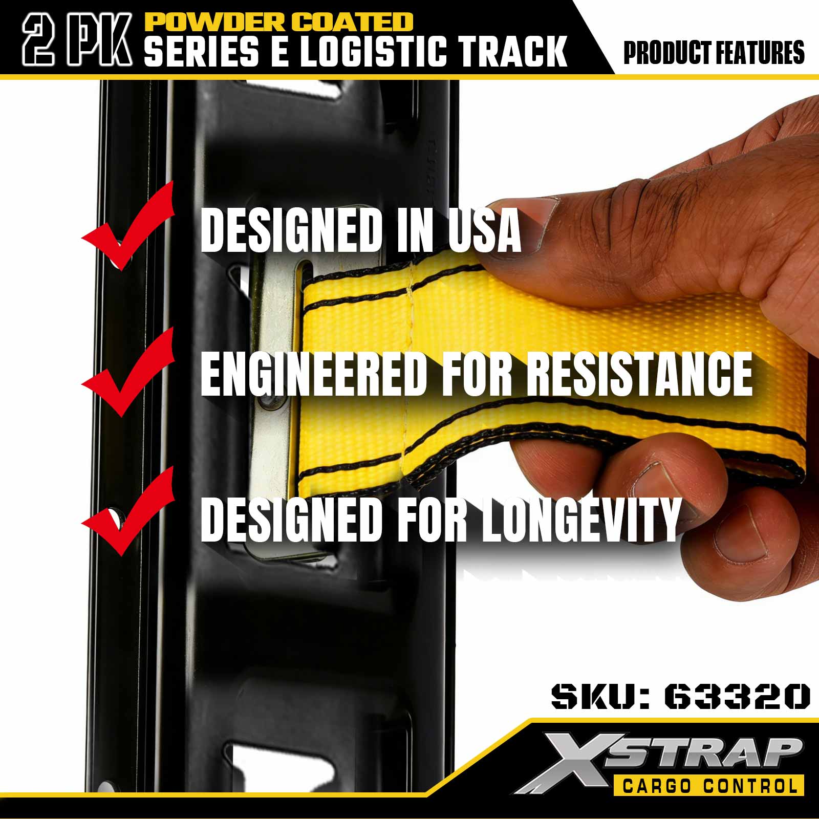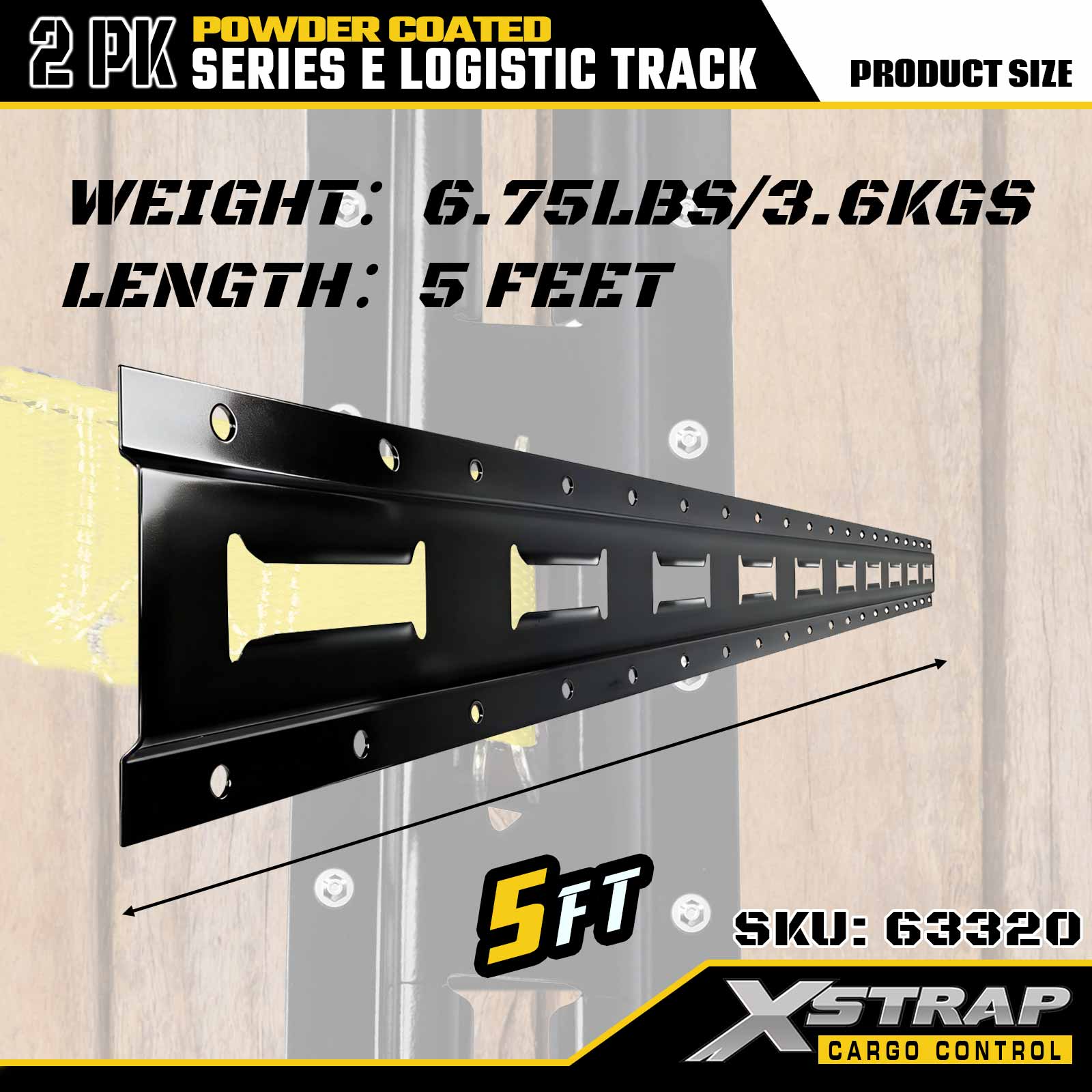 Dây đeo Xstrap 63320 5 ' Đường ray hậu cần loại E màu xám - Thép 12 khổ sơn tĩnh điện, tải trọng 6000LBS, 2PK để hạn chế hàng hóa