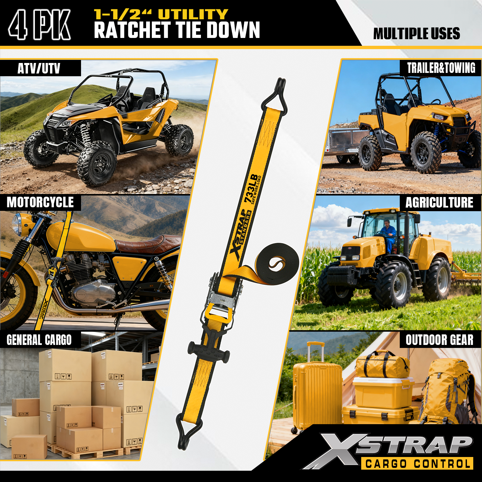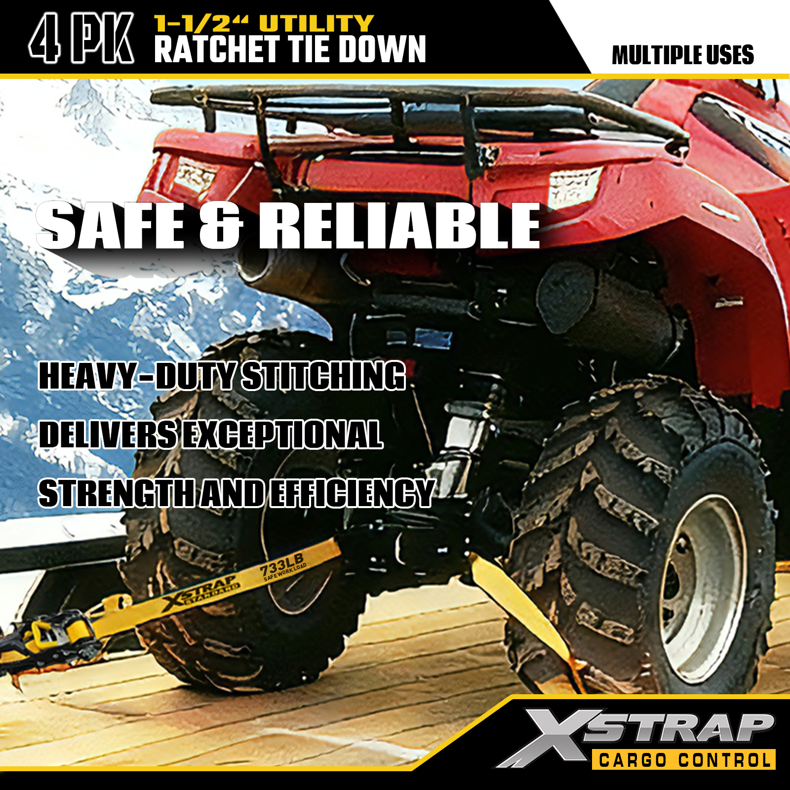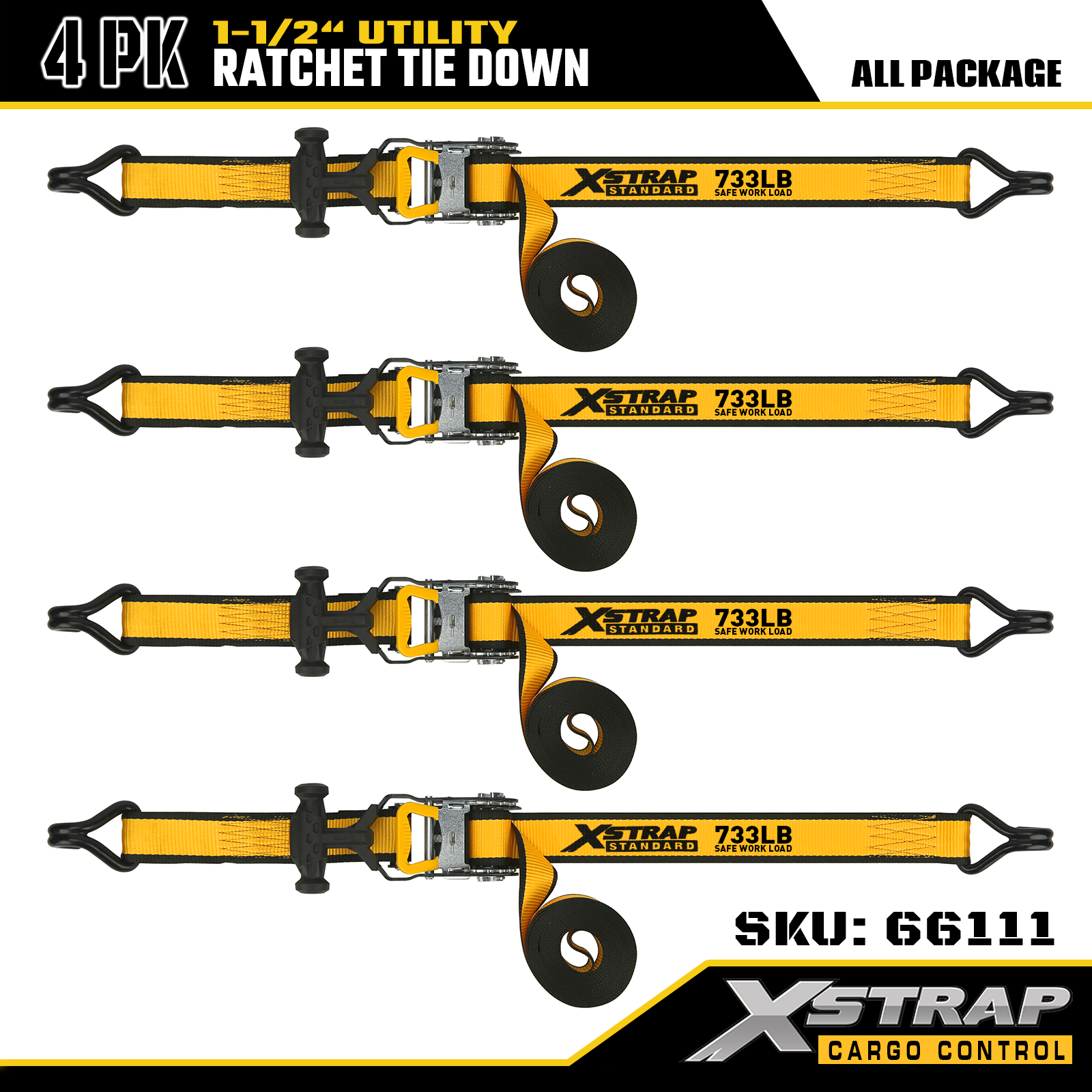 Xstrap T-Handle Ratchet Tie Down có kích thước 1,5 inch x 16ft, tải trọng làm việc an toàn là 1.100 lbs và độ bền đứt là 3.300 lbs.