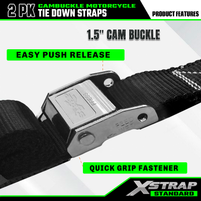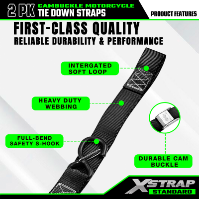 - Thiết kế tiêu chuẩn chịu lực cao: Dây buộc xe máy Xstrap được chế tạo bằng vải có độ bền cao và có độ bền đứt 2200 lbs, khiến chúng trở thành lựa chọn tốt nhất để cố định xe máy, ATV, UTV và xe đạp địa hình. Khi bạn sử dụng dây đai có khóa cam của chúng tôi cho một chuyến đi nhanh chóng, dây buộc Xstrap đảm bảo độ bền và độ an toàn chưa từng có.